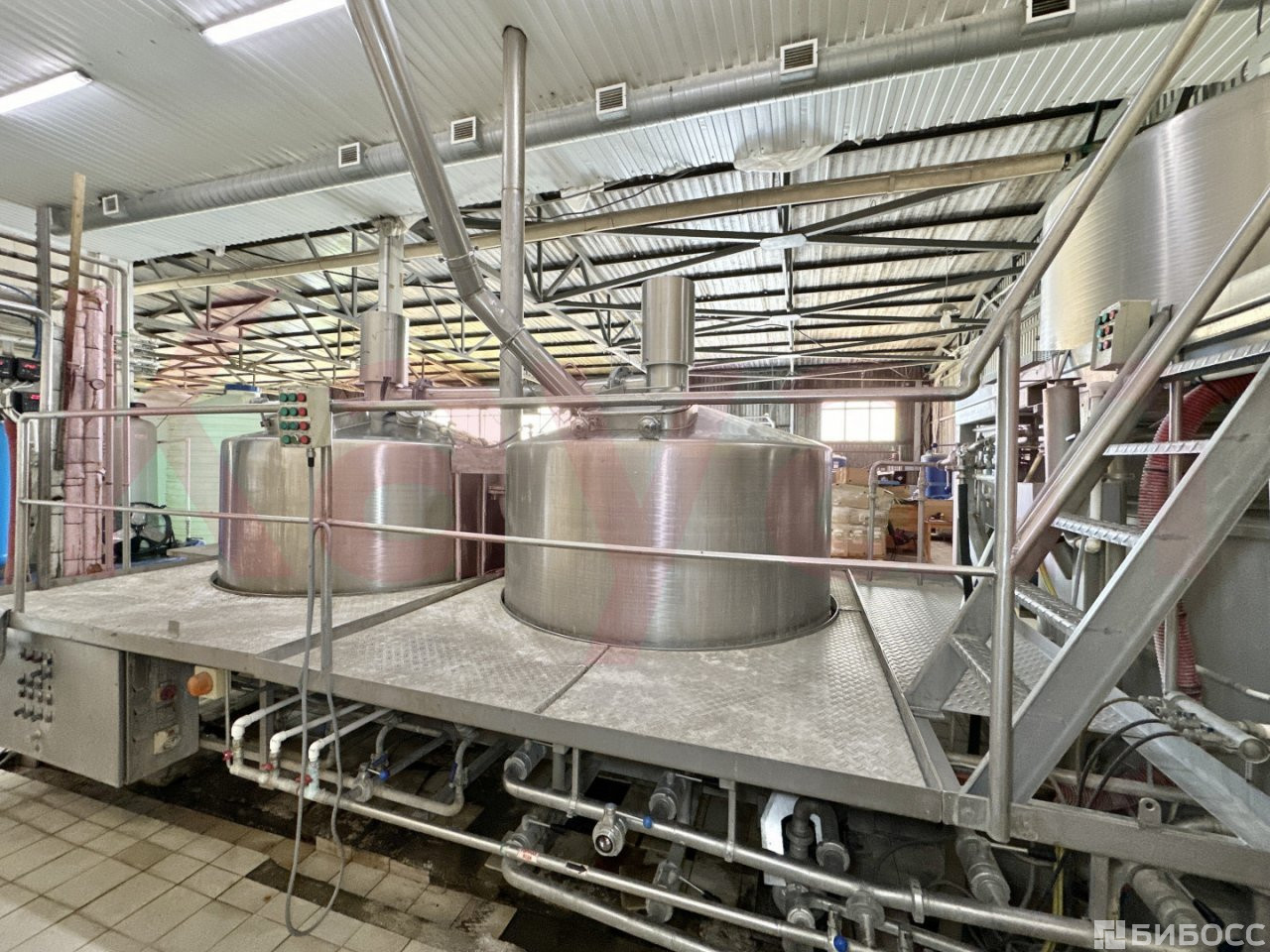 Оборудование:двух вальцовая дробилка 1 шт. (автомат)варочный котел емкость 2,5 т (2 шт.)фильтр чан 2,5 т (1 шт.)гидроциклонный чан (вирпул) 2,5 т (1 шт.)фильтр водоподготовки (1 шт.)емкость технологической горячей воды 6,6 т (2 шт.)воздушный компрессор (1 шт.)котел паровой Е-1, 0-0,9Г-3 (Э) с комплектующими (1 шт.)горелка газовая автомат пр-во Италиямашины для мойки и заправки кег (2 шт.)пластичный теплообменник (1 шт.)чан бродильный емкостью 7 т (10 шт.)лагерный танк емкостью 6,6 т (14 шт.)фарфасы 6,6 т (16 шт.)емкость технологической воды (1 шт.)холодильная установка (установка охлаждения воздуха) ( 1 шт.)кегомойка ( 2шт.)фильтр механический автомат (1 шт.)конденсатор (1 шт.)воздухоохладитель (1 шт.)клапан редукции (1 шт.)емкость для дрожжей (3 шт.)фильтрационная машина (2 шт.)аппарат теплообменник разборный (3 шт.)осмос для фильтрации водылиния розлива в ПЭТ бутылку 1-1,5 литра (1000 бутылок в час)