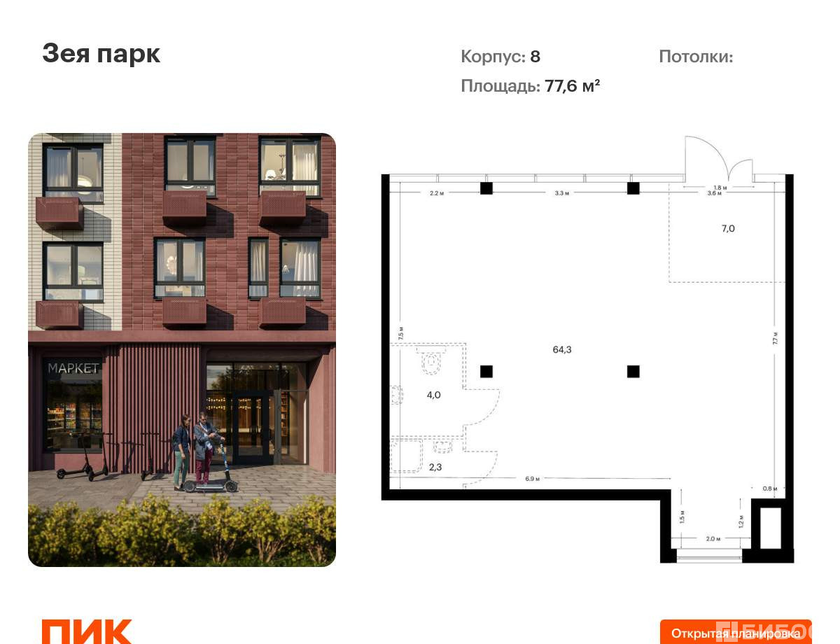 Продаётся нежилое помещение свободного назначения в новом жилом районе Зея парк от ПИК. Открытая планировка, витринное остекление, удобный вход на уровне земли. Помещение (номер на площадке: №2) расположено по адресу: Россия, Амурская область, г. Благовещенск, квартал 800, Корпус 8. Ввод в эксплуатацию 2 квартал 2026. Продажа напрямую от застройщика. Преимущества помещения:
