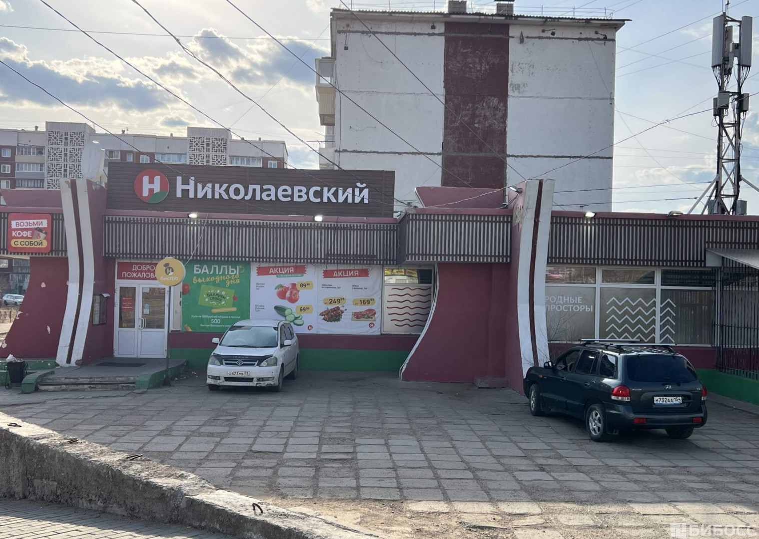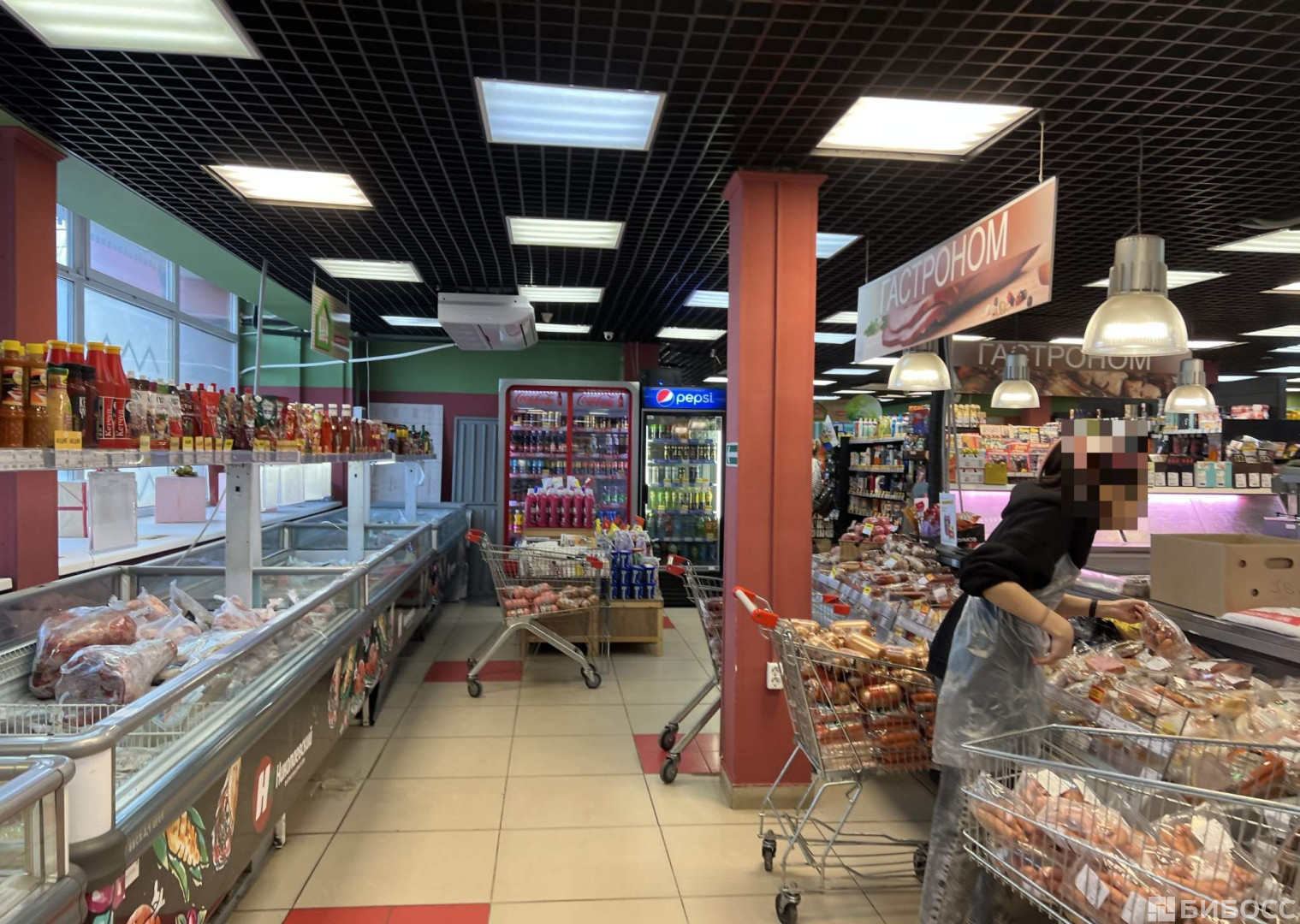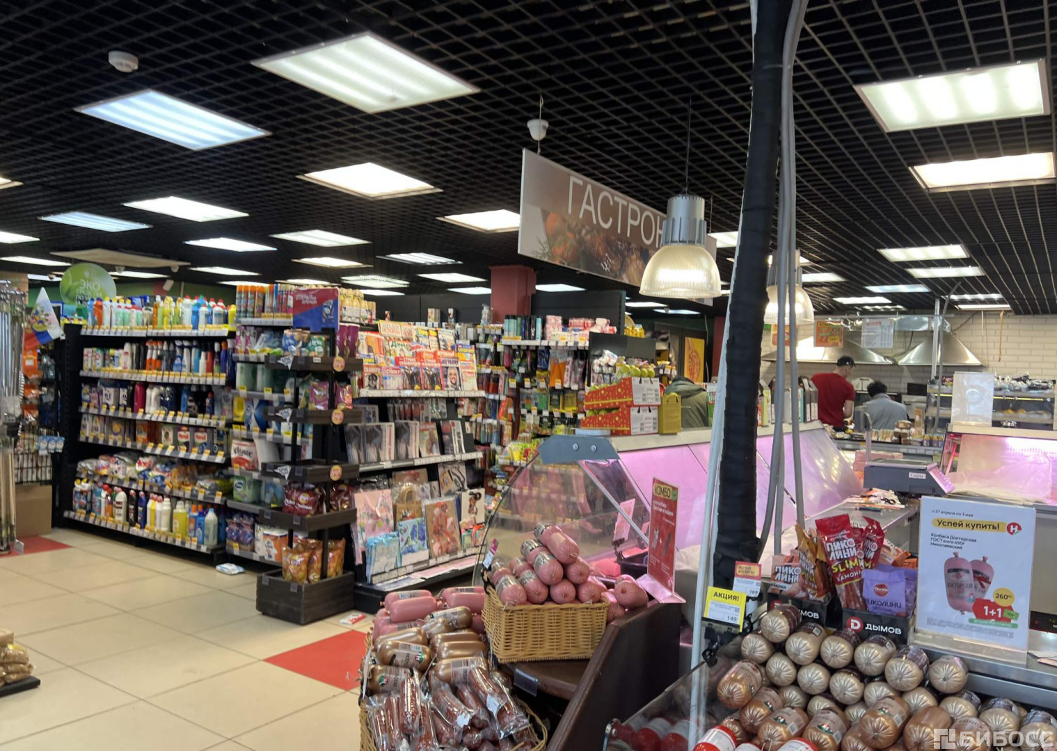 Возможное назначение помещения - торговая площадь, высота потолков 3.2 м, требуется провести косметический ремонт, на полу плитка, 4 мокрые точки, тип окон - витринные, окна выходят на улицу. Общая площадь здания 1685 м2, здание на первой линии, здание работает с 8 до 23 ч., открыто ежедневно. Здание построено в 1984 году, участок находится в собственности, здание полностью функционирует.