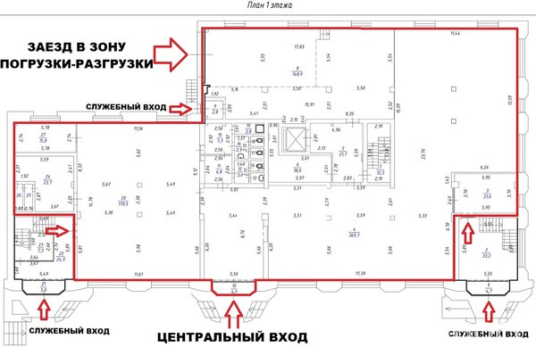 - отдельный вход для клиентов по середине здания + несколько служебных;