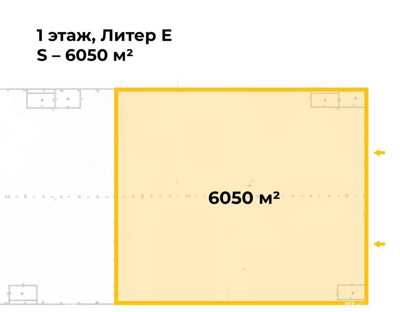 — Гибкость планировки: Возможна перепланировка. Арендуйте от 216 м2 до всего объема 6050 м2.