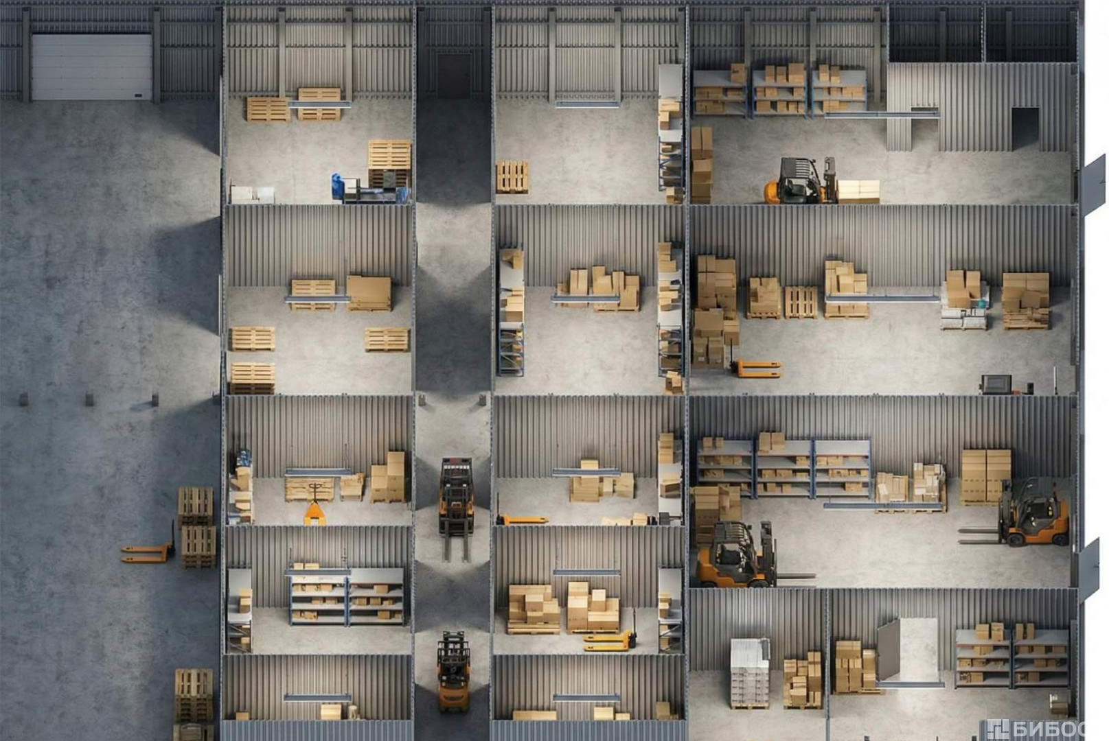 — Пол: Усиленные бетонные полы, рассчитанные на серьезные нагрузки.