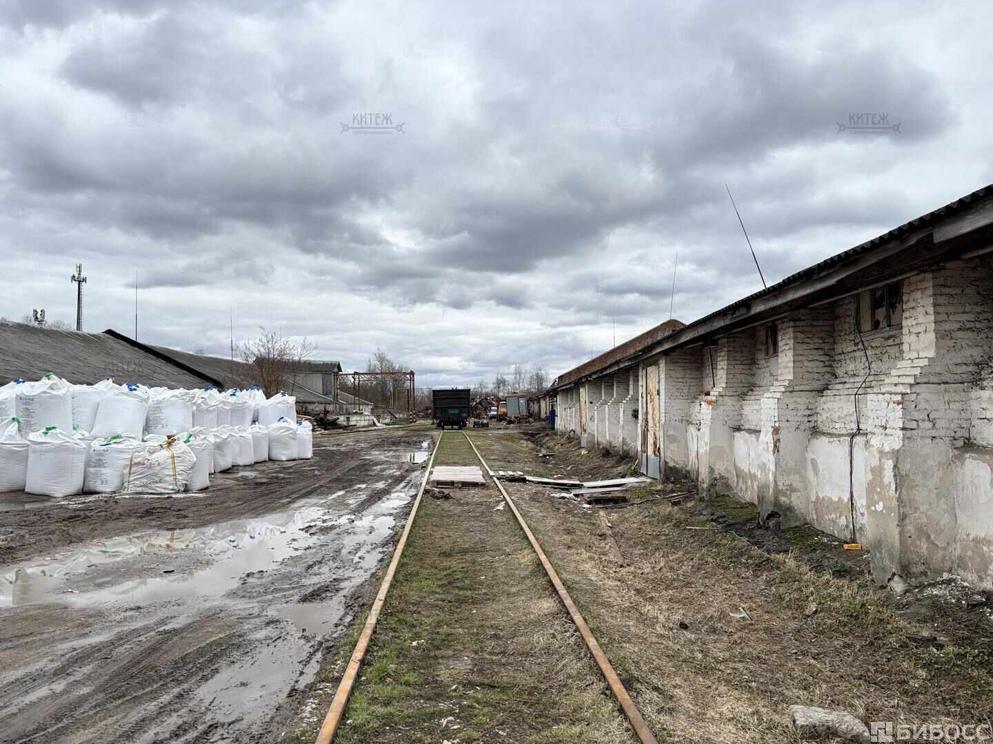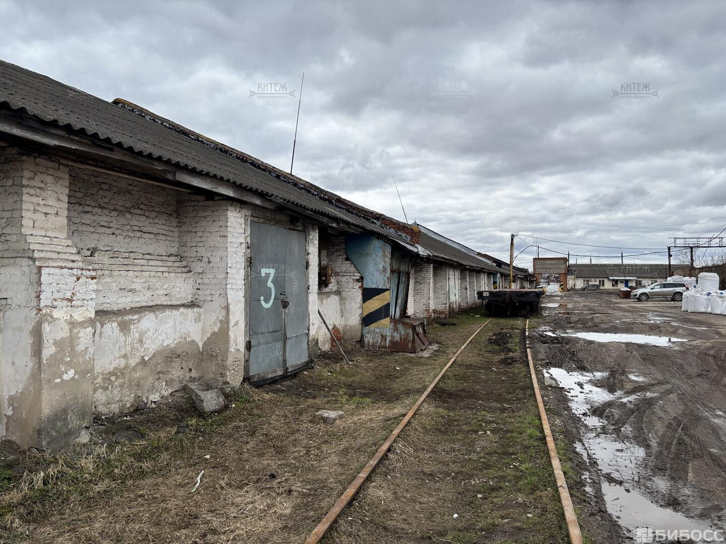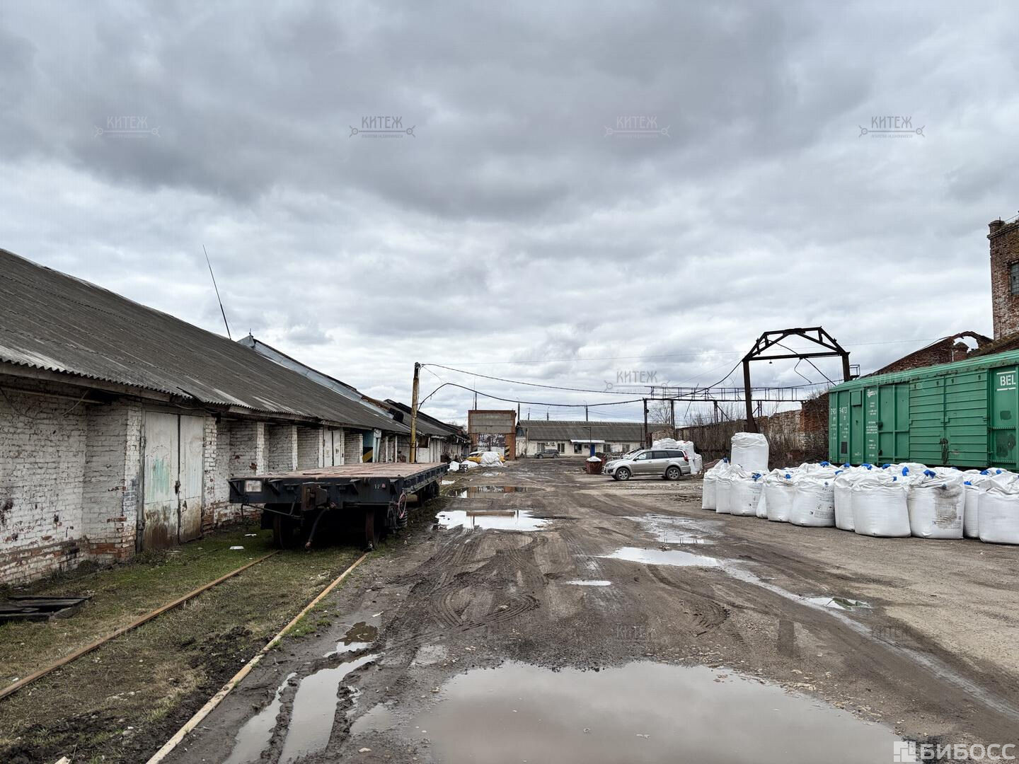 Территория огорожена, охраняется. Парковка для любого вида транспорта. Рабочая железнодорожная ветка.