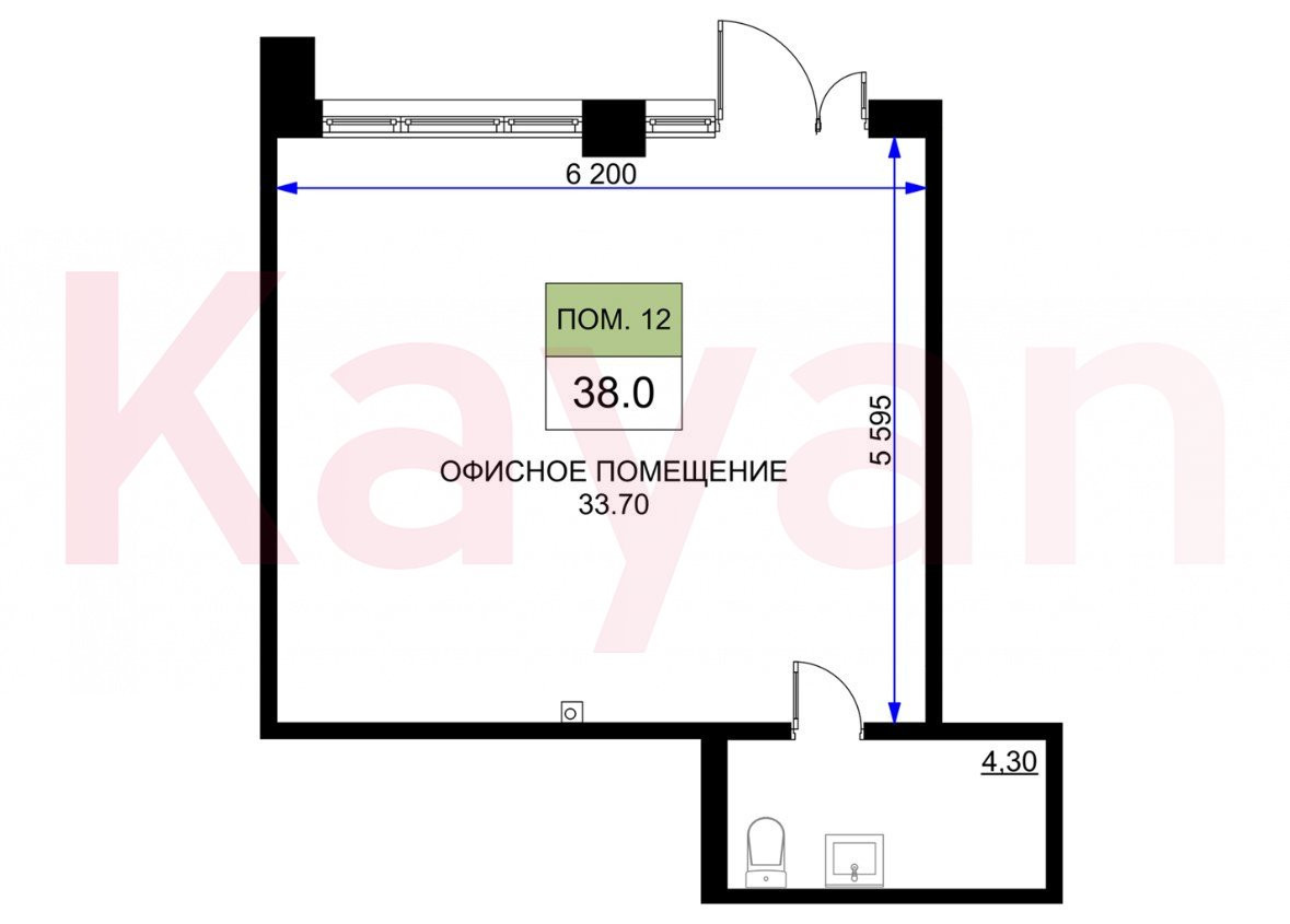 Общая площадь:38 м²