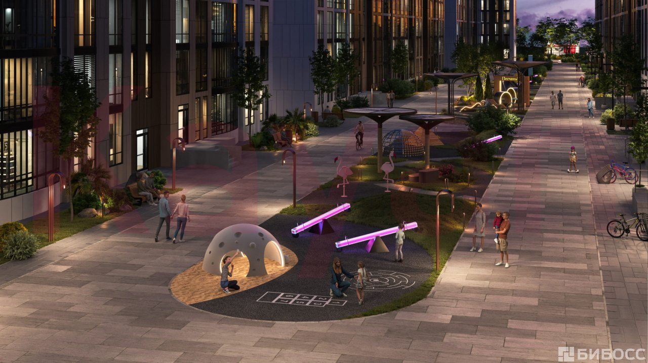 На территории комплекса располагаются: обустроенные детские площадки; площадка для отдыха взрослых; спортивная площадка; стоянки для автомобилей.