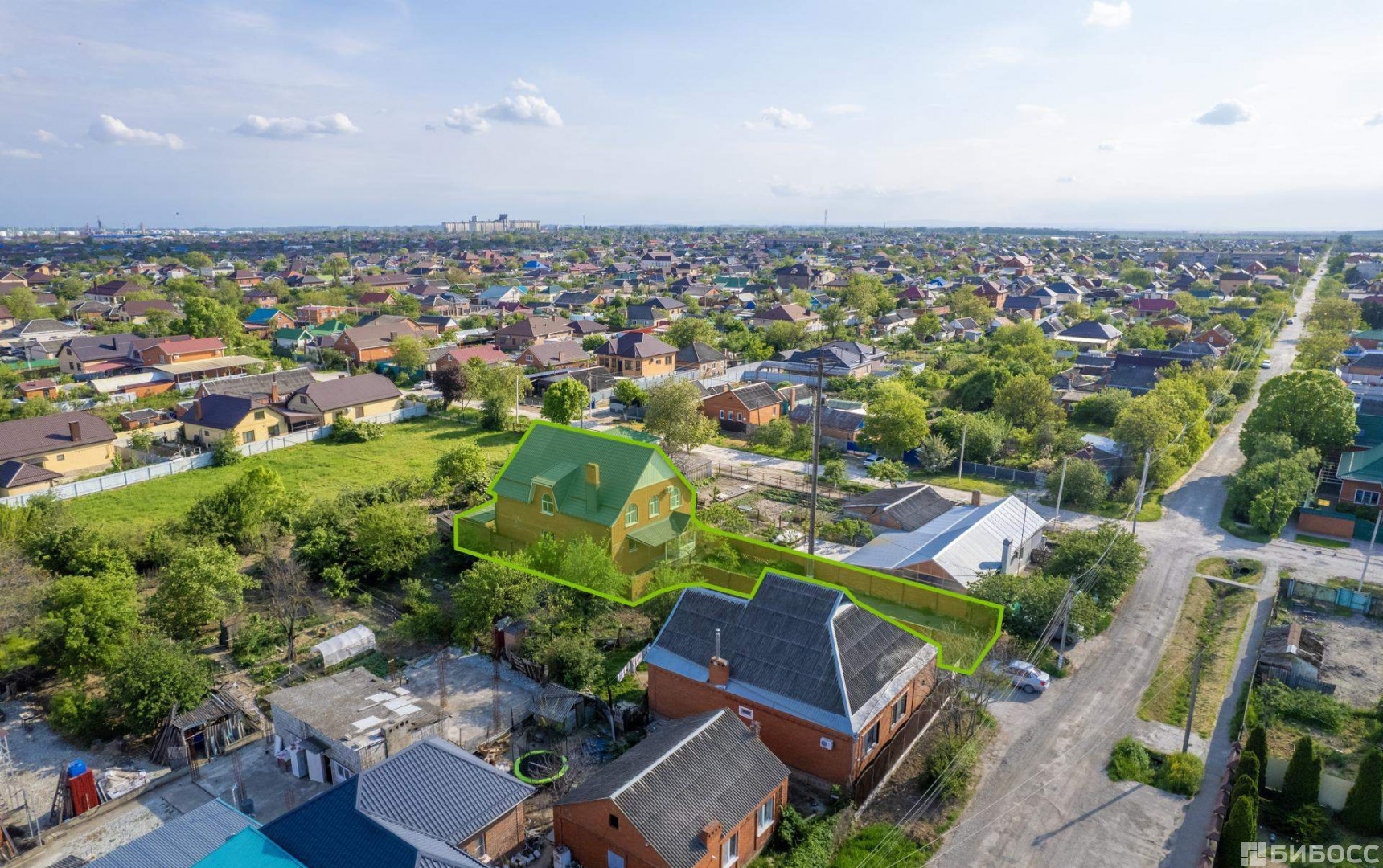 Имущественный комплекс расположен среди индивидуальной жилой застройки. Ближайшее окружение, помимо частного сектора, включает: школу, бассейн, торговый центр, стоматологию и администрацию. Всего в 300 м от объекта находится остановка общественного транспорта, в 1,51 км автовокзал.