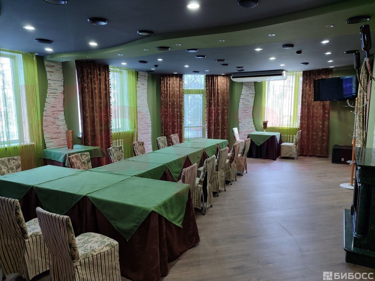 Отдельная входная группа по ул. Гагарина, предусмотрен летник, мангальная зона, банкетный зал на 240 человек, ремонт сделан