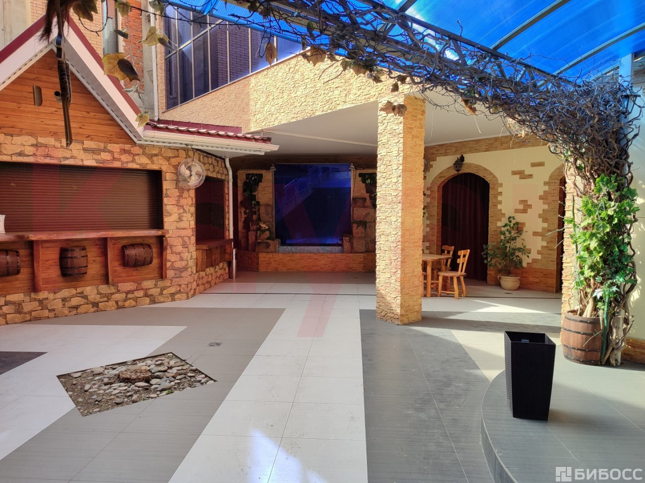 Отдельная входная группа по ул. Гагарина, предусмотрен летник, мангальная зона, банкетный зал на 240 человек, ремонт сделан
