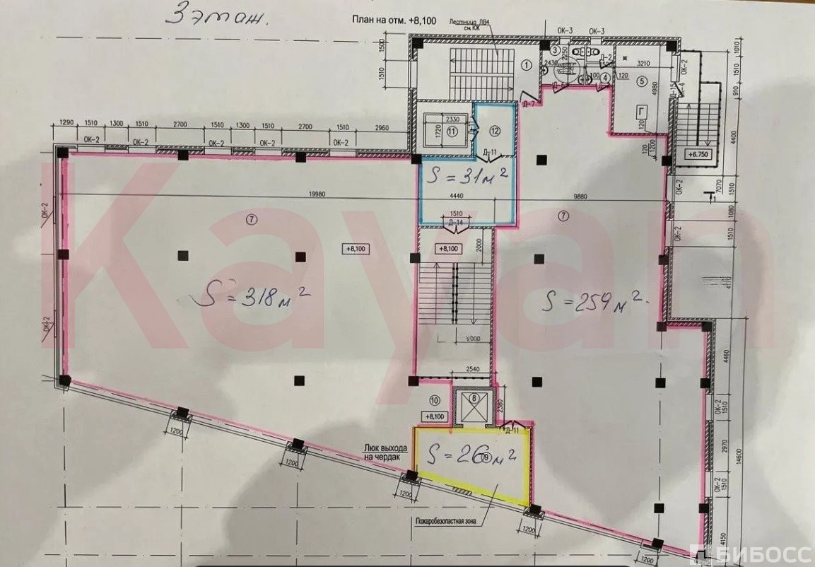 1 этаж - 110 кв. м.2 этаж - 655 кв.м3 этаж 634 кв.м