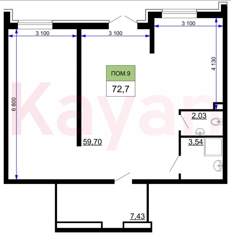 Общая площадь:73 м²