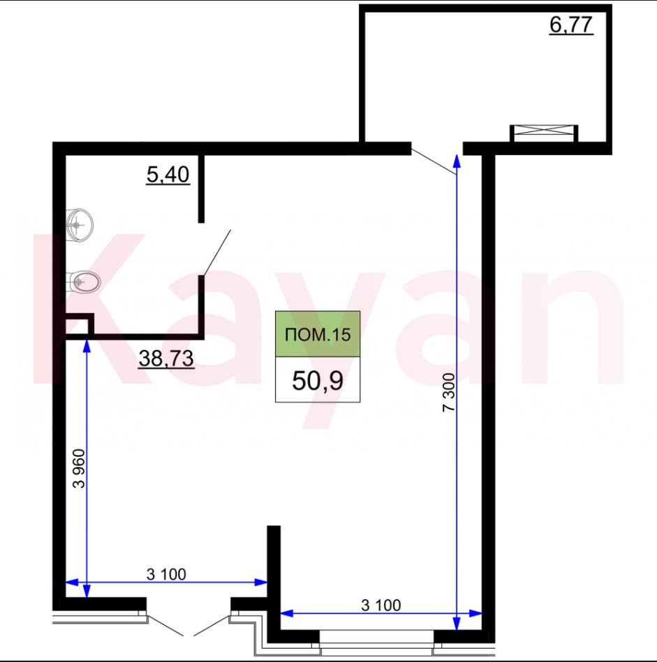 Общая площадь:51 м²