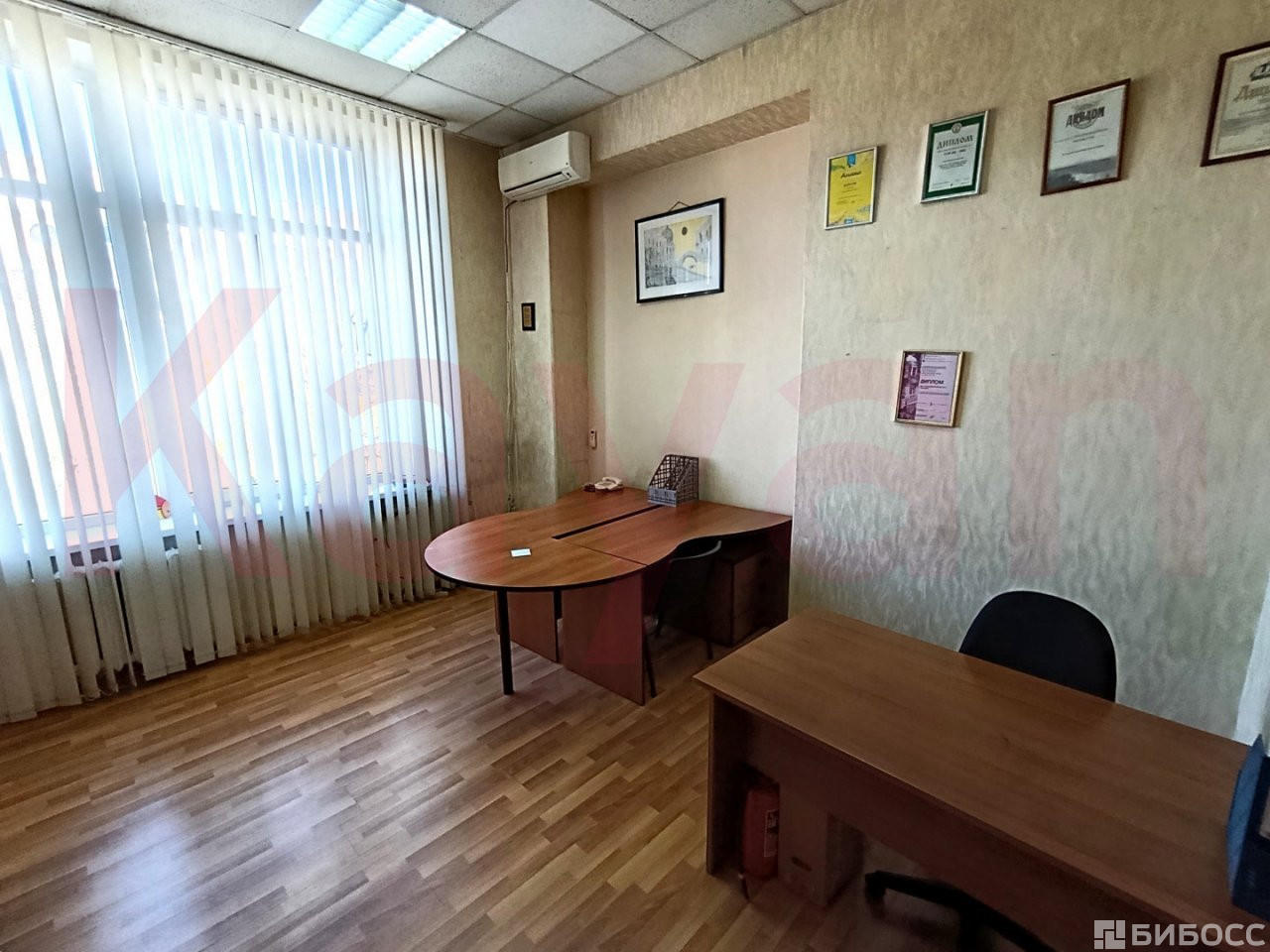 Кабинеты имеют нестандартные большие окна, от солнечных лучей установлены вертикальные жалюзи, остается вся мебель, что видна на фото.