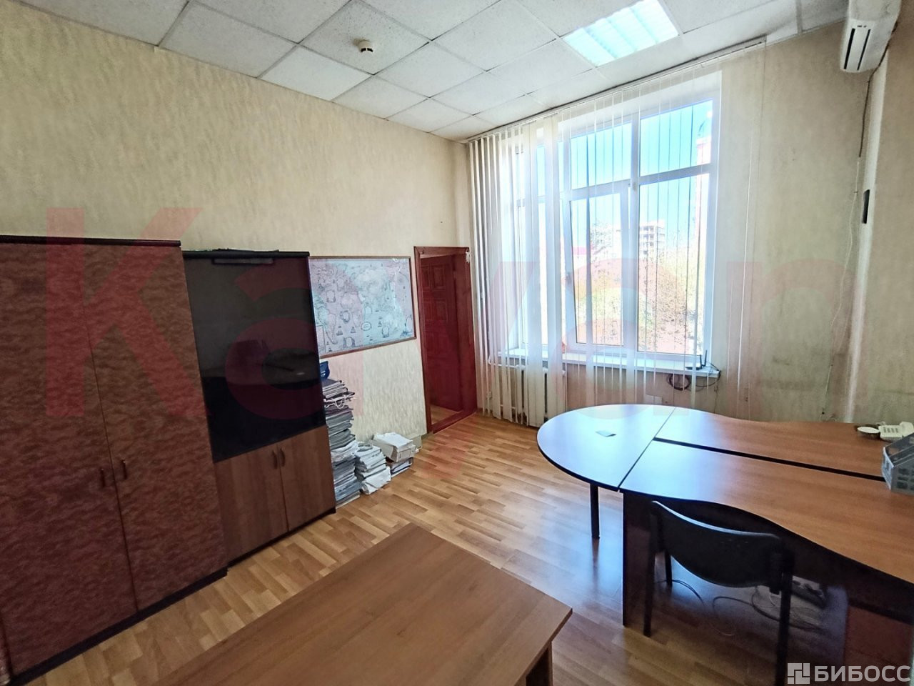 Кабинеты имеют нестандартные большие окна, от солнечных лучей установлены вертикальные жалюзи, остается вся мебель, что видна на фото.
