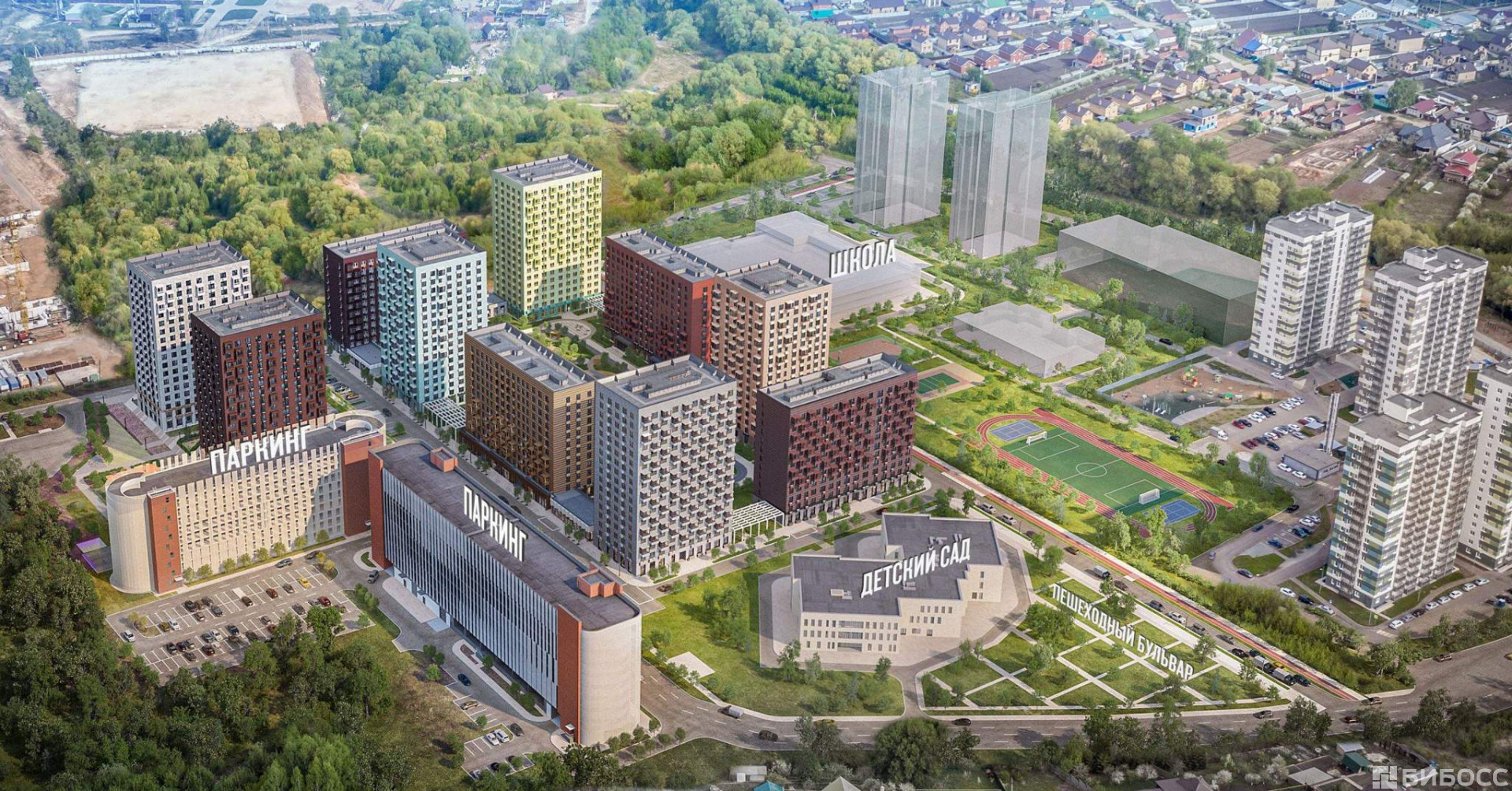 Из каждого дома будет выход в уютный двор-парк: это закрытая территория для отдыха, где растут цветы и деревья, есть зона для спокойного отдыха, детские и спортивные площадки. Здесь можно читать книгу на скамейке, заниматься йогой и найти ещё десятки интересных занятий для взрослых и детей. Также в жилом квартале будет пешеходный бульвар, по которому приятно гулять или кататься на велосипеде, роликах, скейтборде.