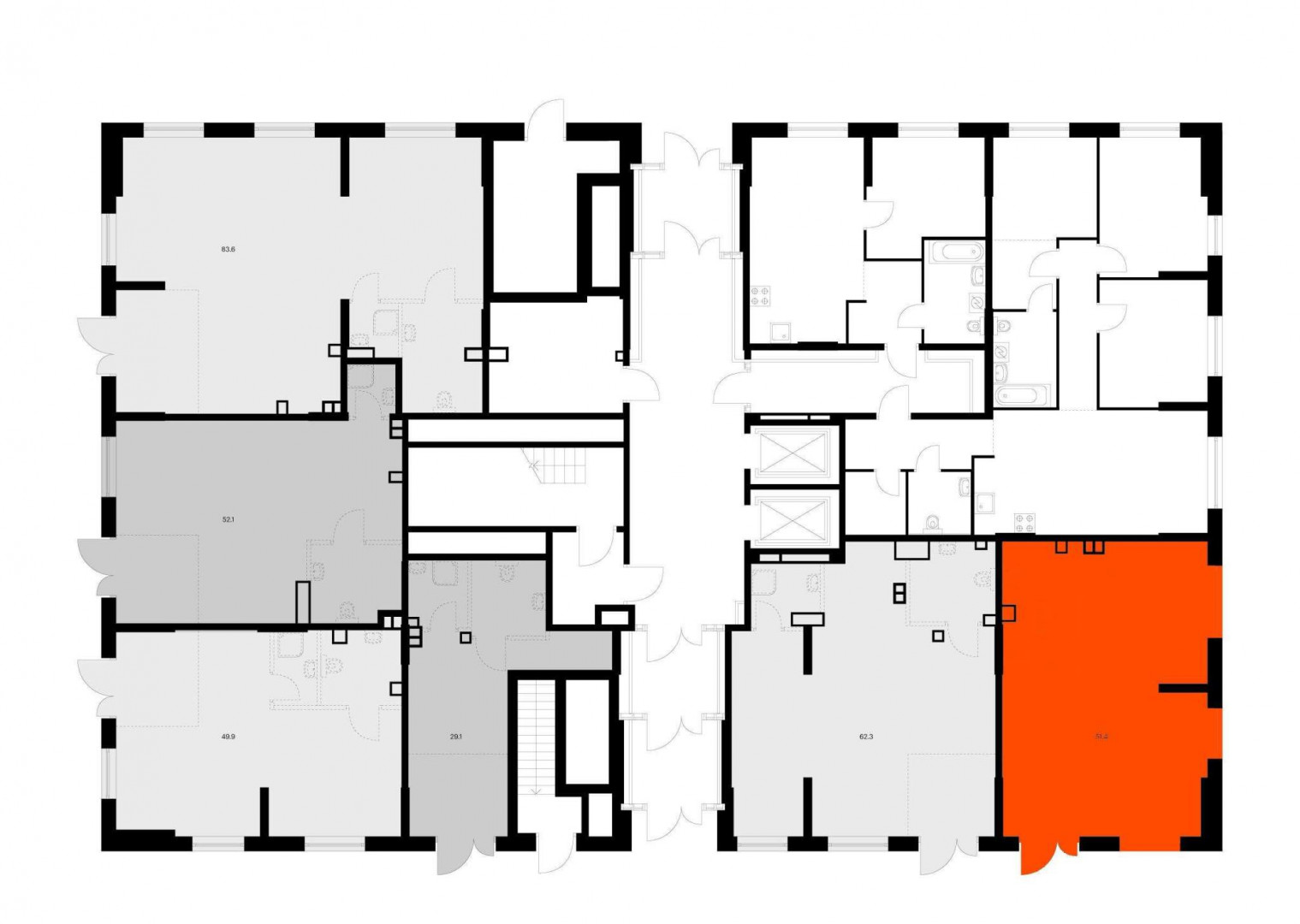 - Открытая планировка и возможность объединения помещений