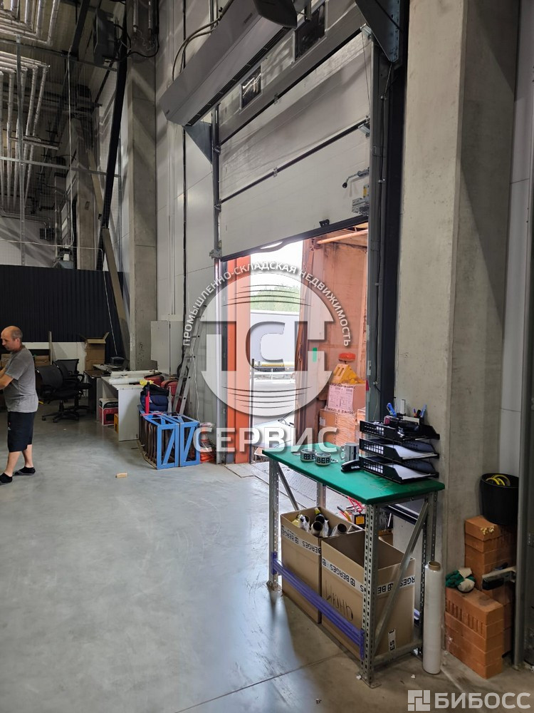 Полы с антипылевым покрытием, высота потолков 12 м, двое доковых ворот, нагрузка на пол 6 тонн на кв м