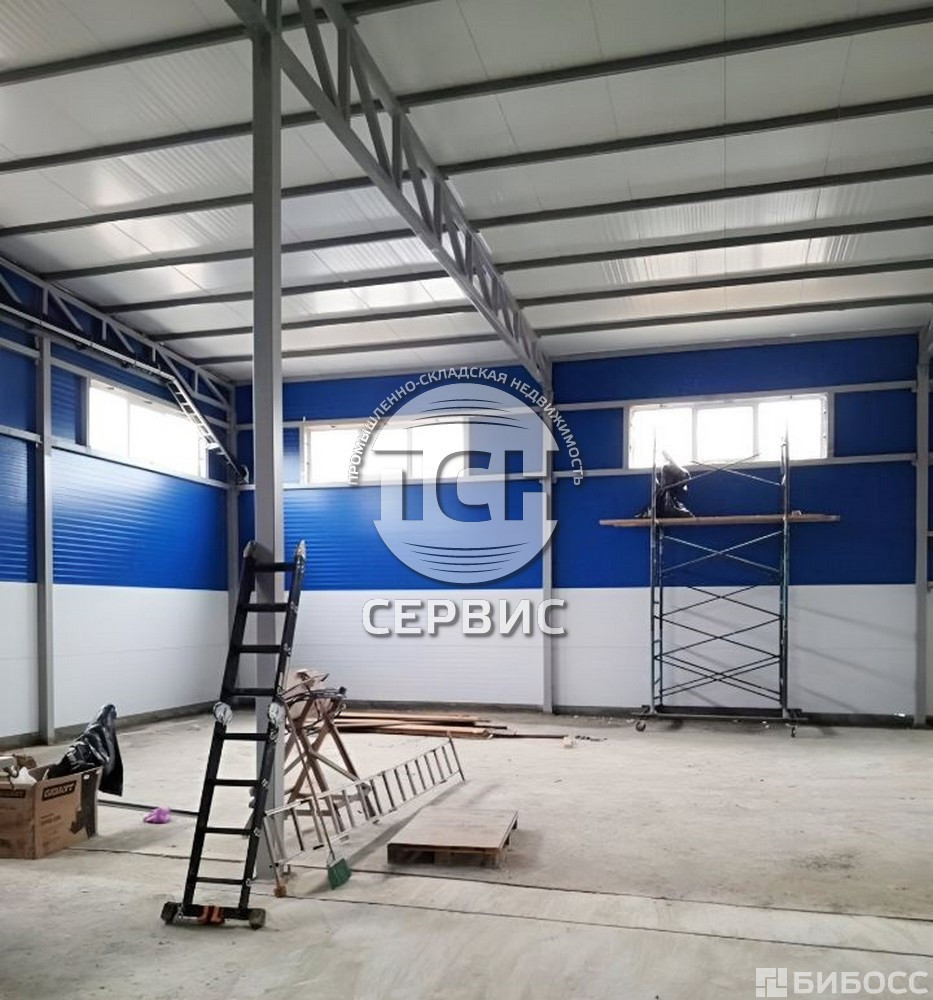 Высота потолков до металл. конструкций - 5,5 м. Отдельных 2 входа и 2-е подъемных ворот - 4,5Х3,5 м. Остекление по периметру с открывающимися форточками. Покрытие пола - бетон крашенный, толщина 30 см. Мокрая точка, канализация, отопление.