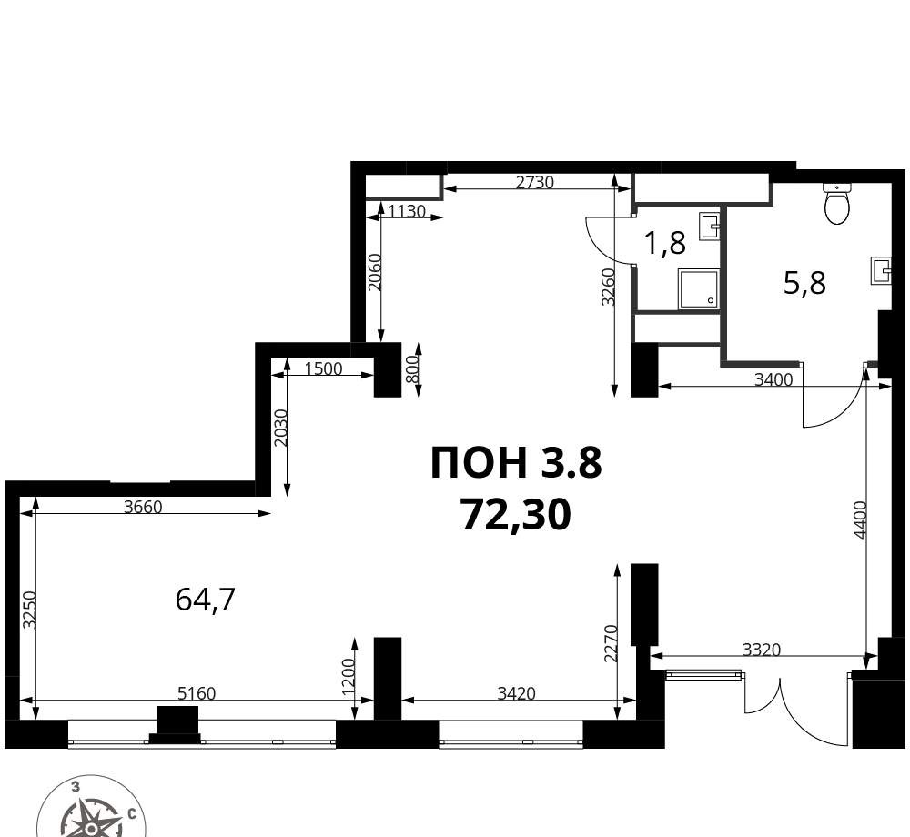 Площадь: 72 м²