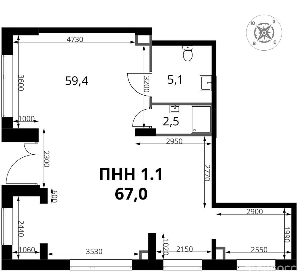 Площадь: 67 м²