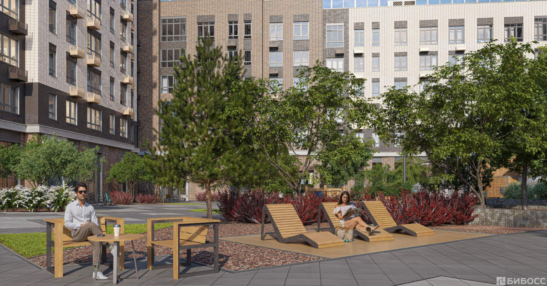 - Спортивная среда: закольцованный веломаршрут с навигацией, спортивный комплекс с термами, закрытый тренажерный зал и зоны ворк-аута