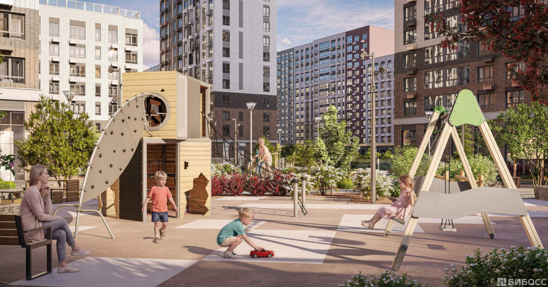 - Безопасность: закрытые дворы без машин, безбарьерная среда и сквозные подъезды, камеры на детских площадках с возможностью трансляции на смартфоне