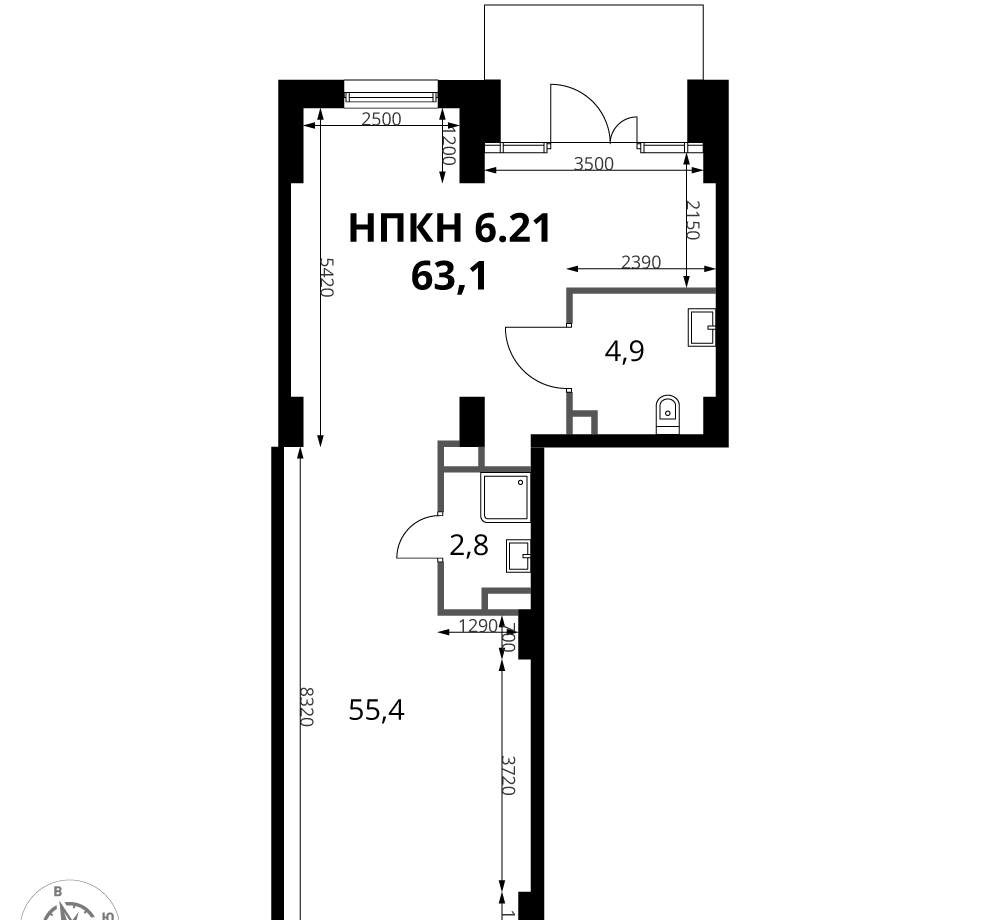 Площадь: 63 м²