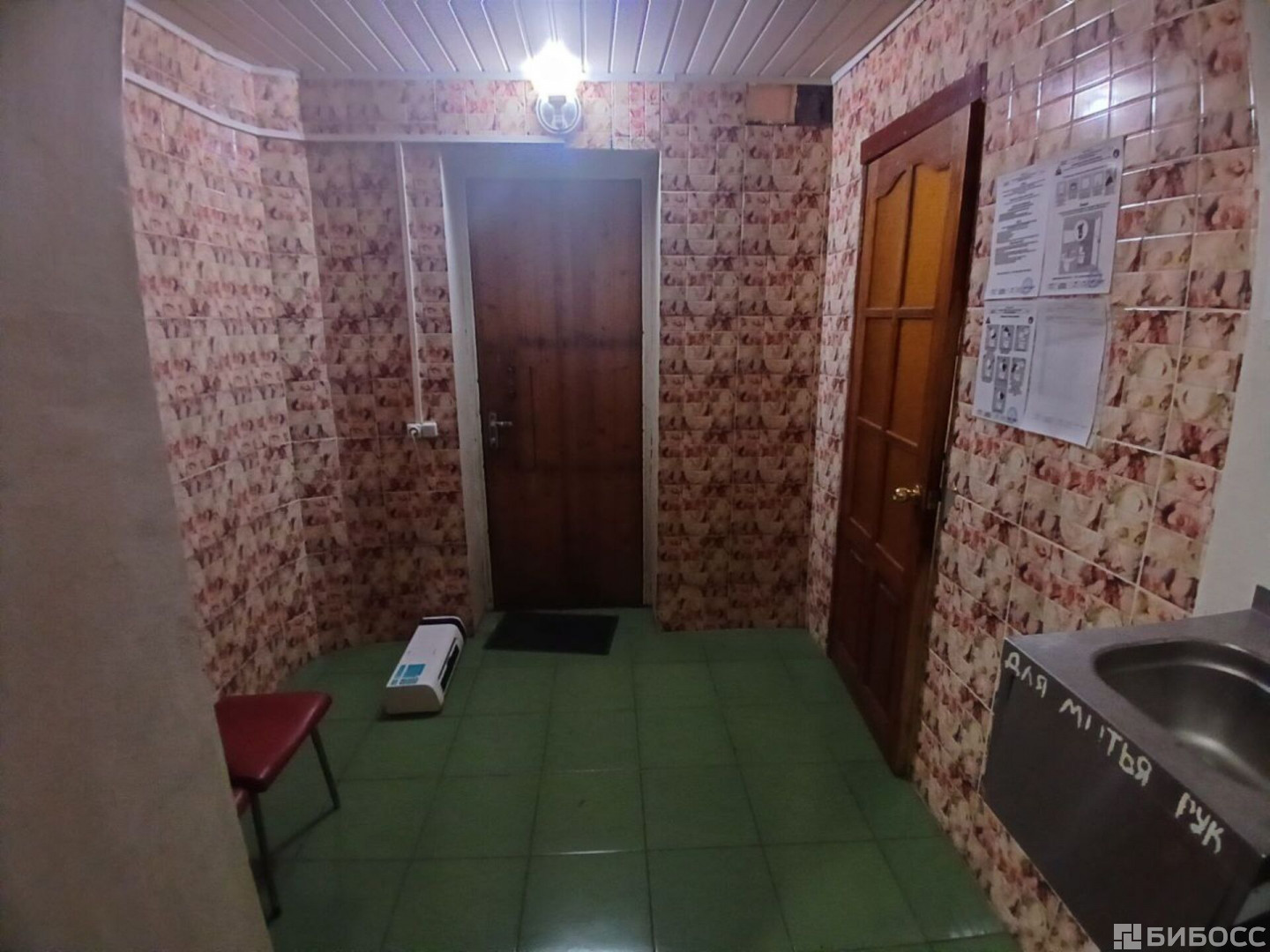 ✅ Состояние как новое: Чистое помещение с плиткой на стенах и полу, высокие потолки.