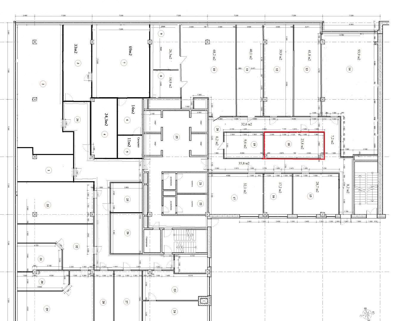 - центральные коммуникации, сан.узлы на этажах