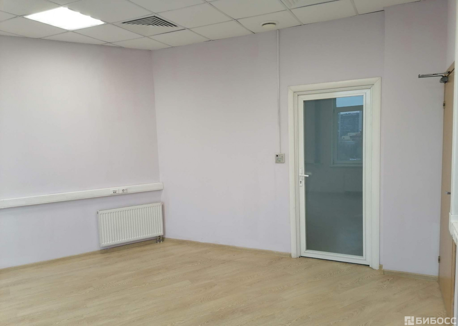 Вход в офис - общий с улицы. В здании есть лифт, охрана, в офисе центральное кондиционирование, вентиляция офиса - приточная, центральное отопление, пожарная сигнализация.