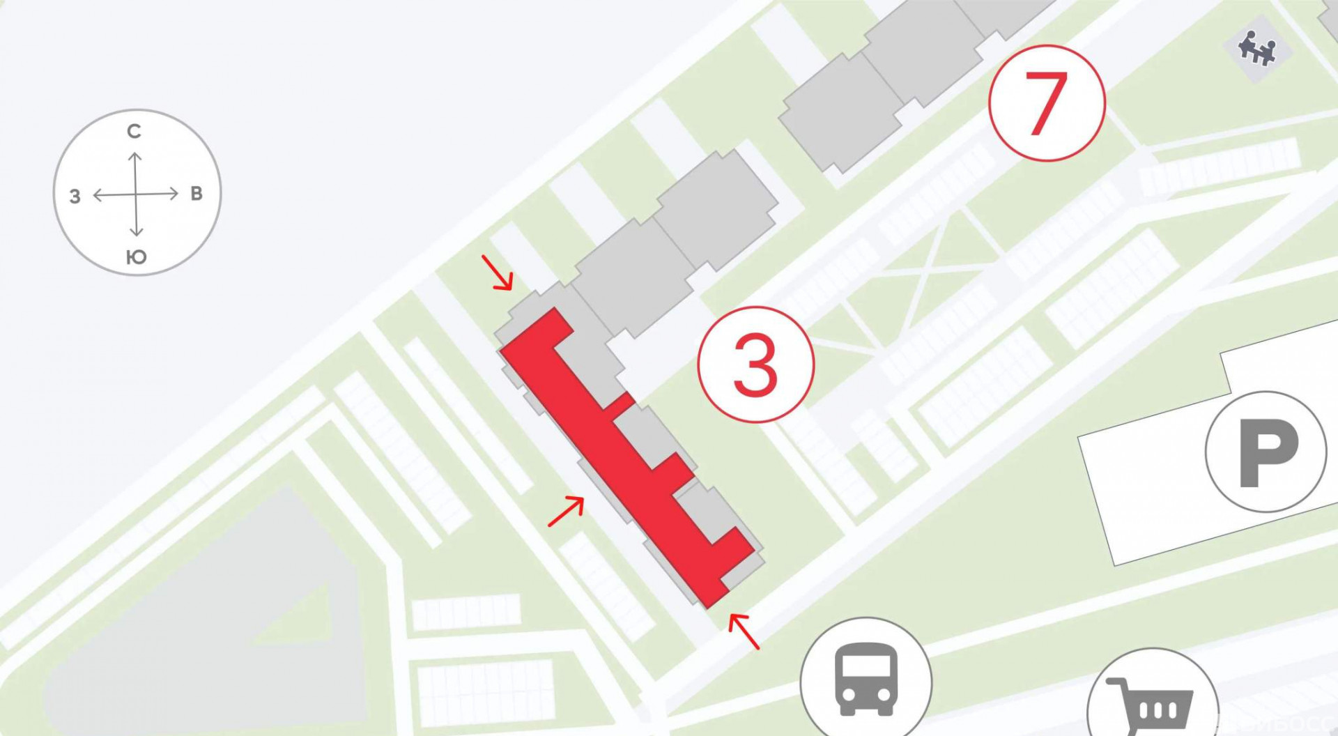 Локация формирует стабильный пешеходный и автомобильный трафик за счёт плотной жилой застройки, развития соседних кварталов и дефицита качественной коммерческой инфраструктуры в окружении. Проект ориентирован на семейную аудиторию и постоянное проживание, что обеспечивает высокий ежедневный спрос на товары и услуги повседневного назначения.