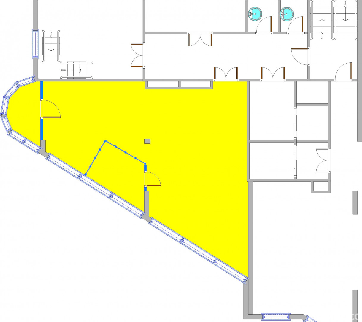Вход в офис - общий с улицы. В здании есть лифт, охрана, в офисе центральное кондиционирование, вентиляция офиса - приточная, центральное отопление, пожарная сигнализация.