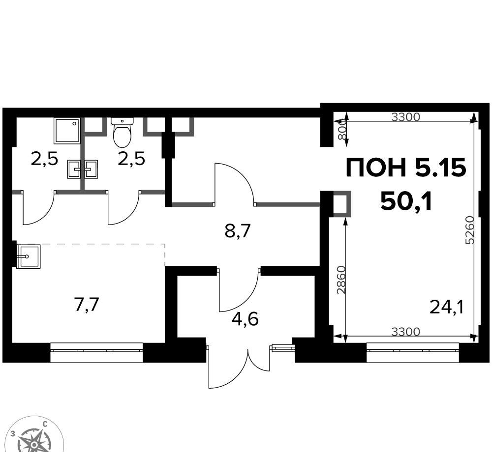 Общая площадь:50 м²