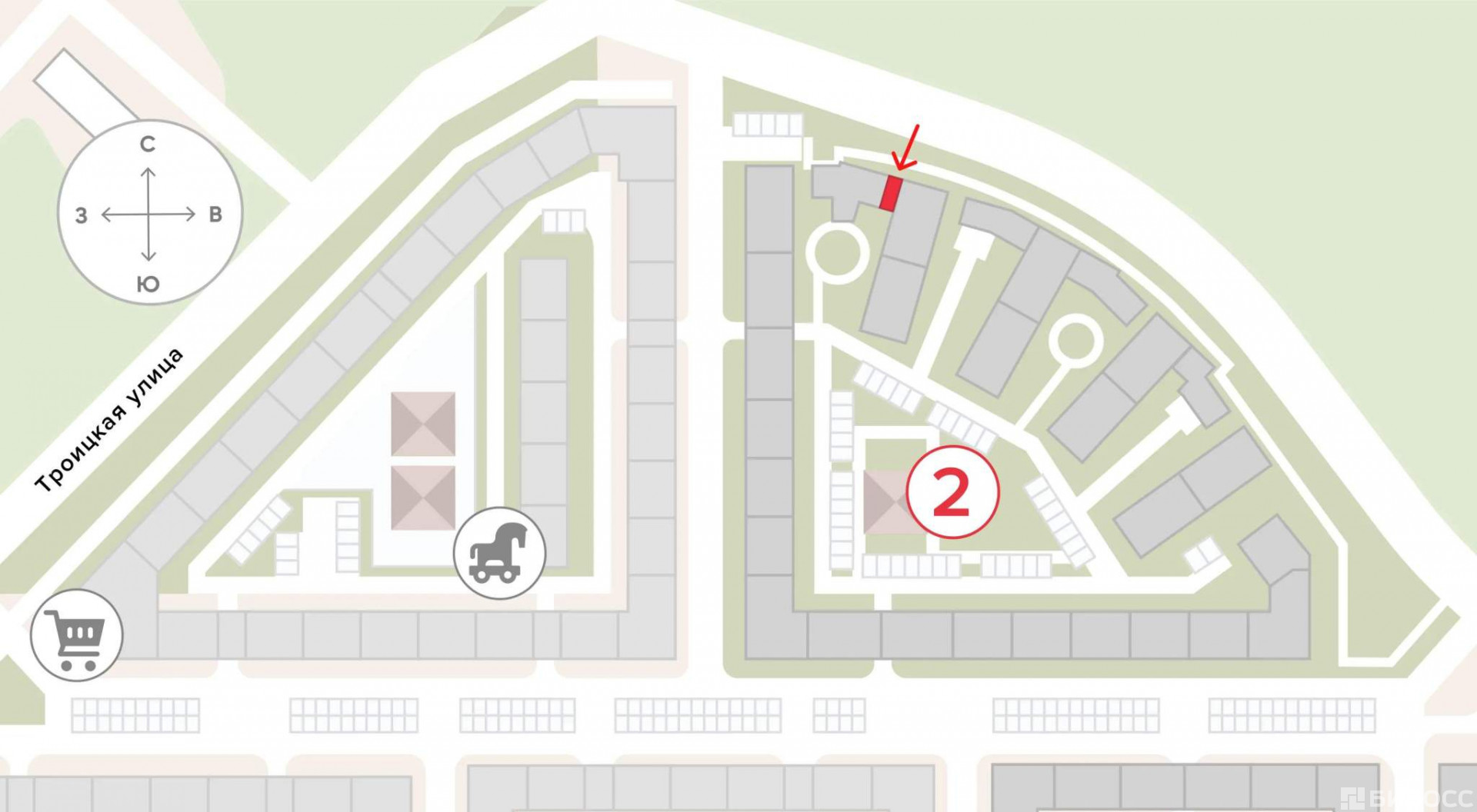 развитый район с насыщенной инфраструктурой и активным пешеходным трафиком.