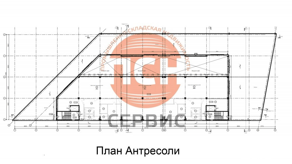 Общая площадь 15118 м²., 4 этажа, площадь каждого этажа 2000 м². мансардный этаж под офисы 962,4 м².