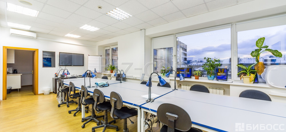 • планировка в офисе: кабинетная;