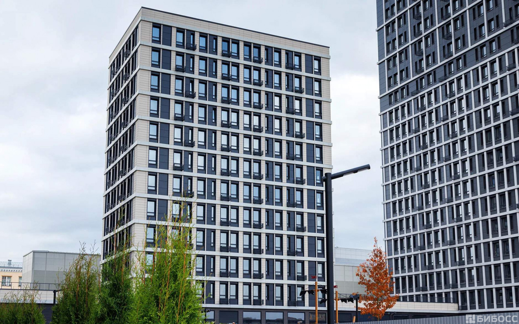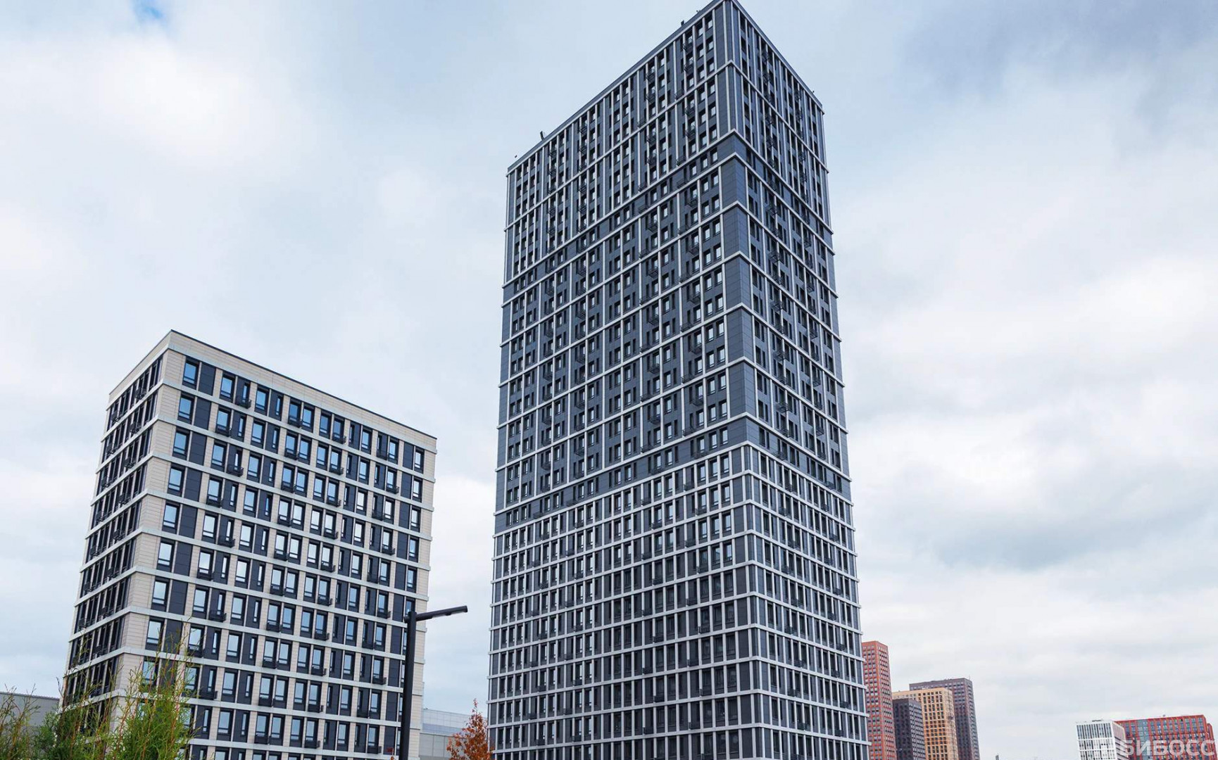 Современная архитектура от T+T Architects с металлическими фасадами, панорамным остеклением и закрытыми дворами (детские площадки playhub, спортзоны) . Комплекс сочетает урбанистику и комфорт - идеально для бизнеса с потоком жителей и посетителей.