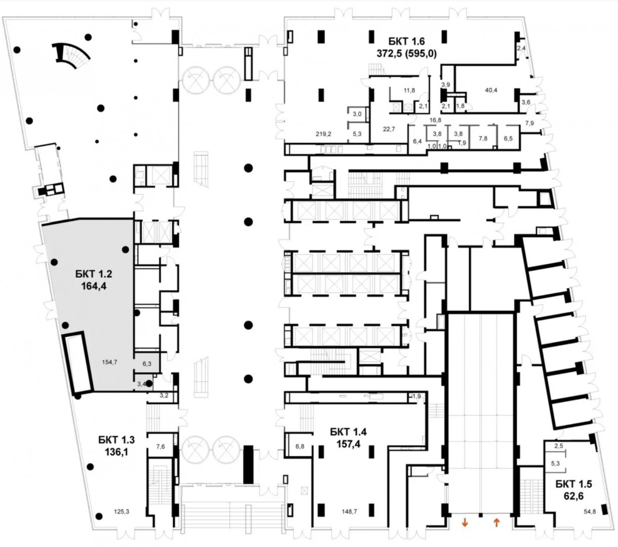 5 лифтовых групп (в том числе 17 грузопассажирских лифтов)
