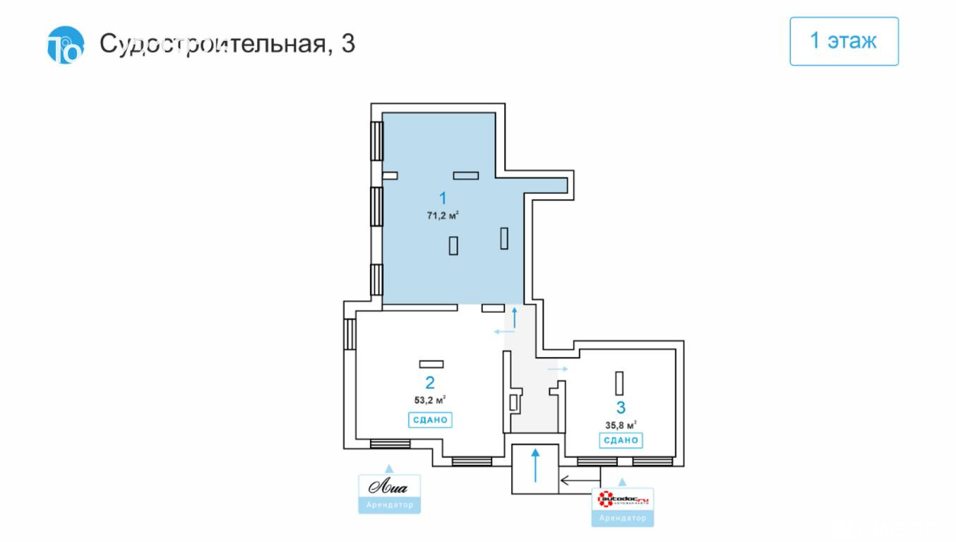 Аренда помещения свободного назначения, 71 м² , Судостроительная улица 3