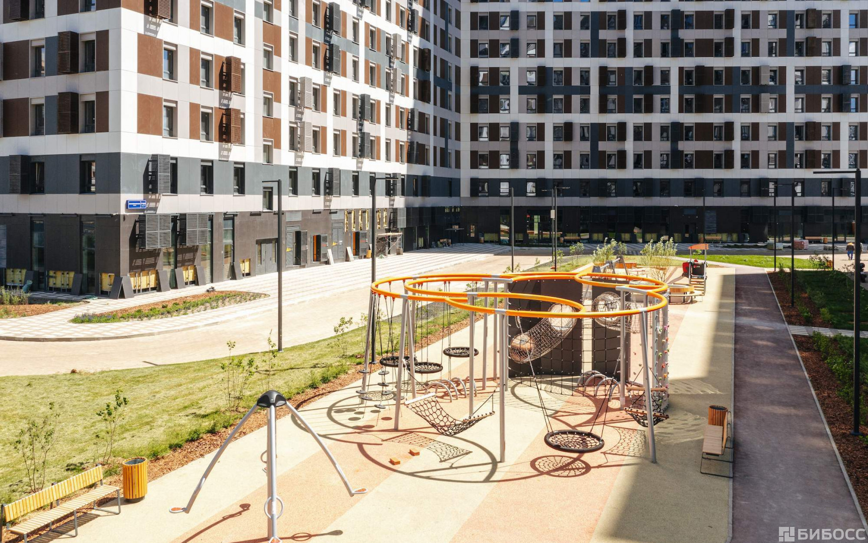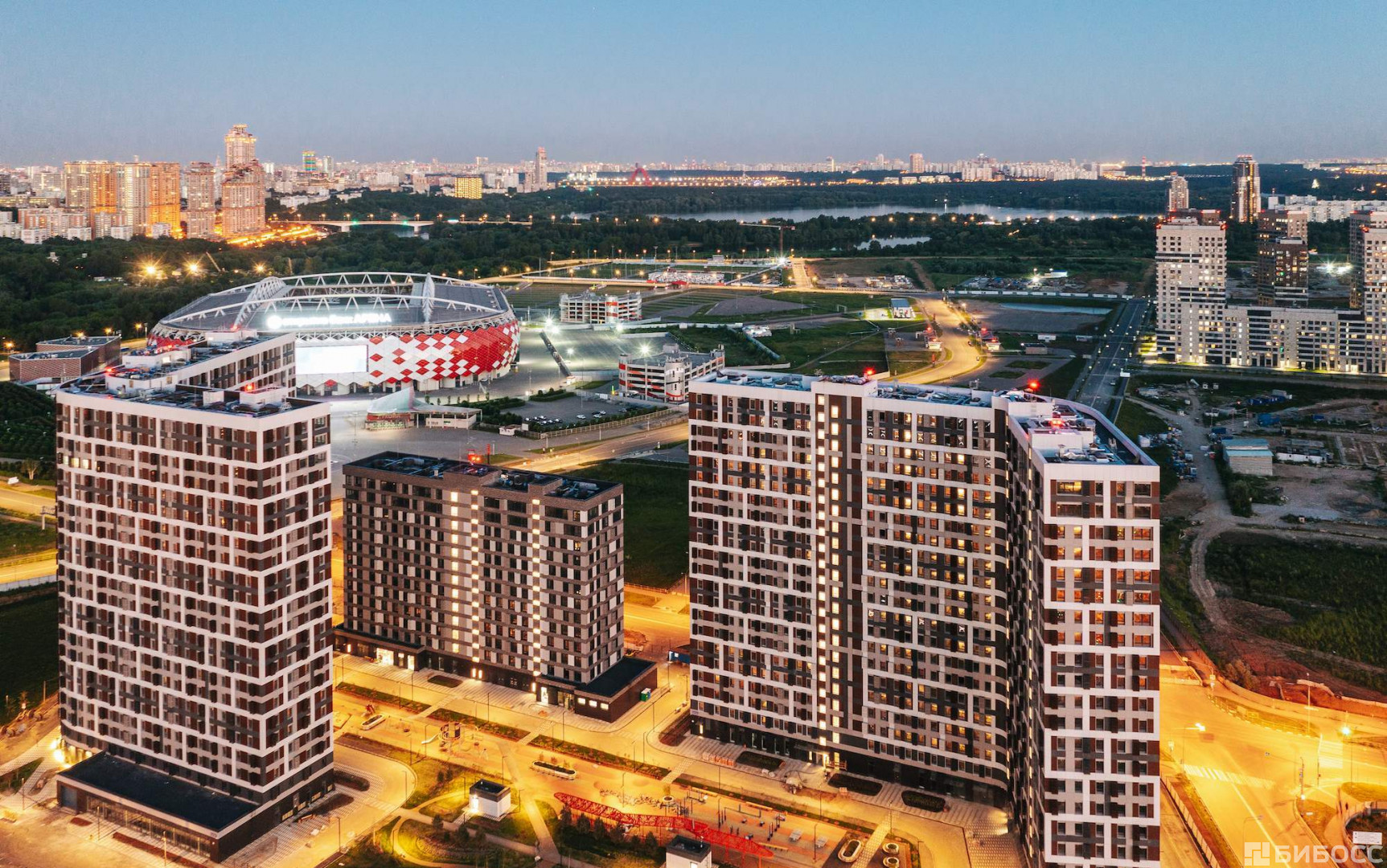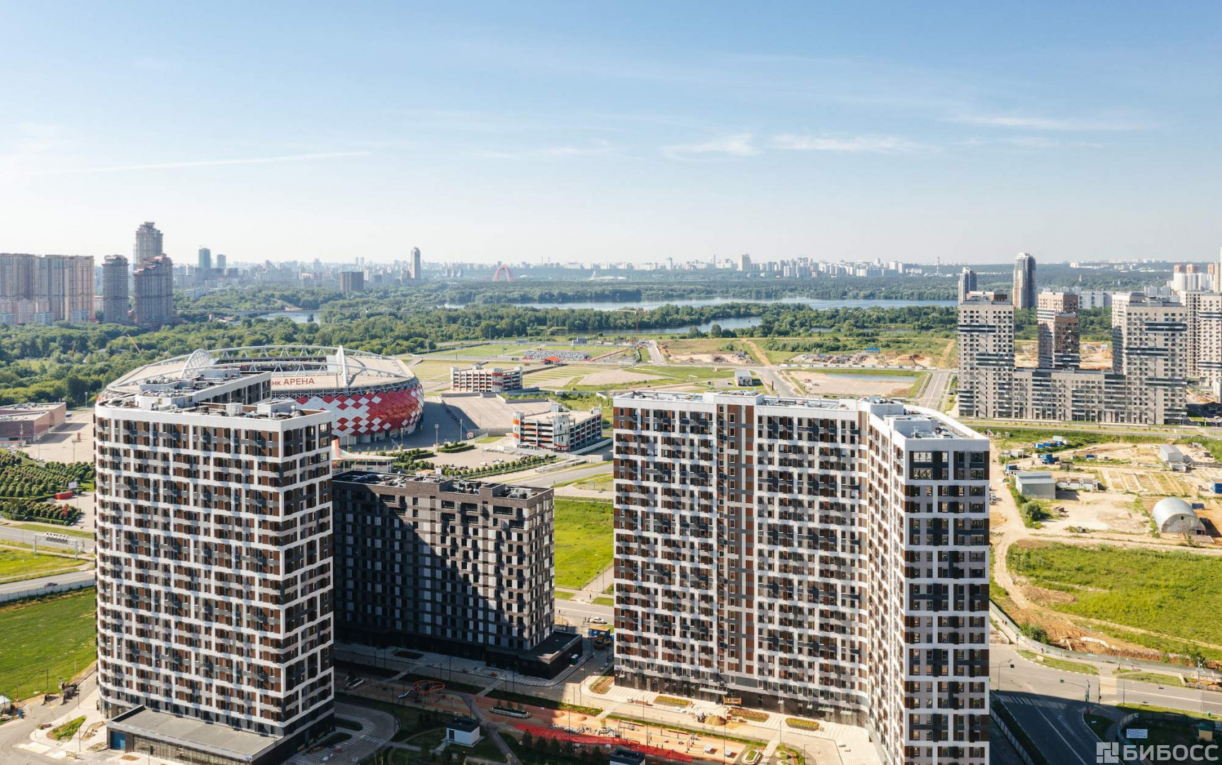 В нескольких сотнях метров располагается стадион "Открытие Арена" (домашняя арена футбольного клуба "Спартак) . Возможно, именно с этим связано "физкультурное" название апарт-комплекса.