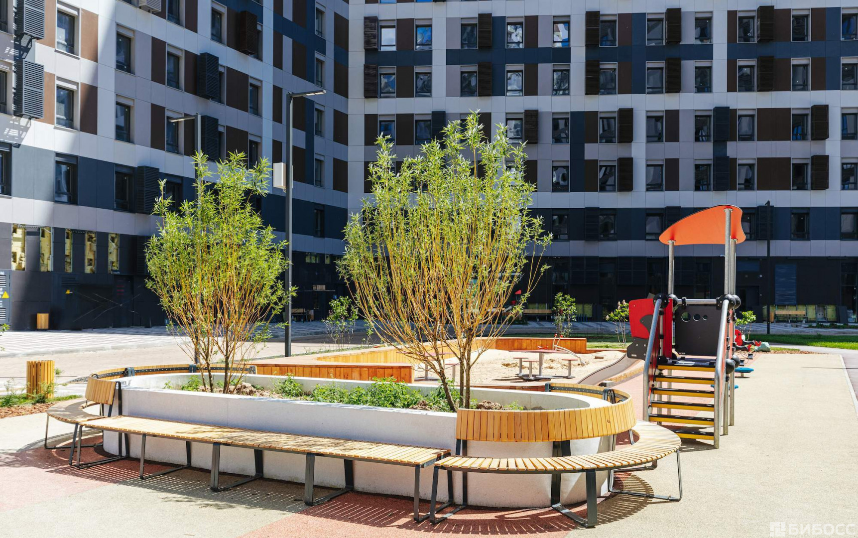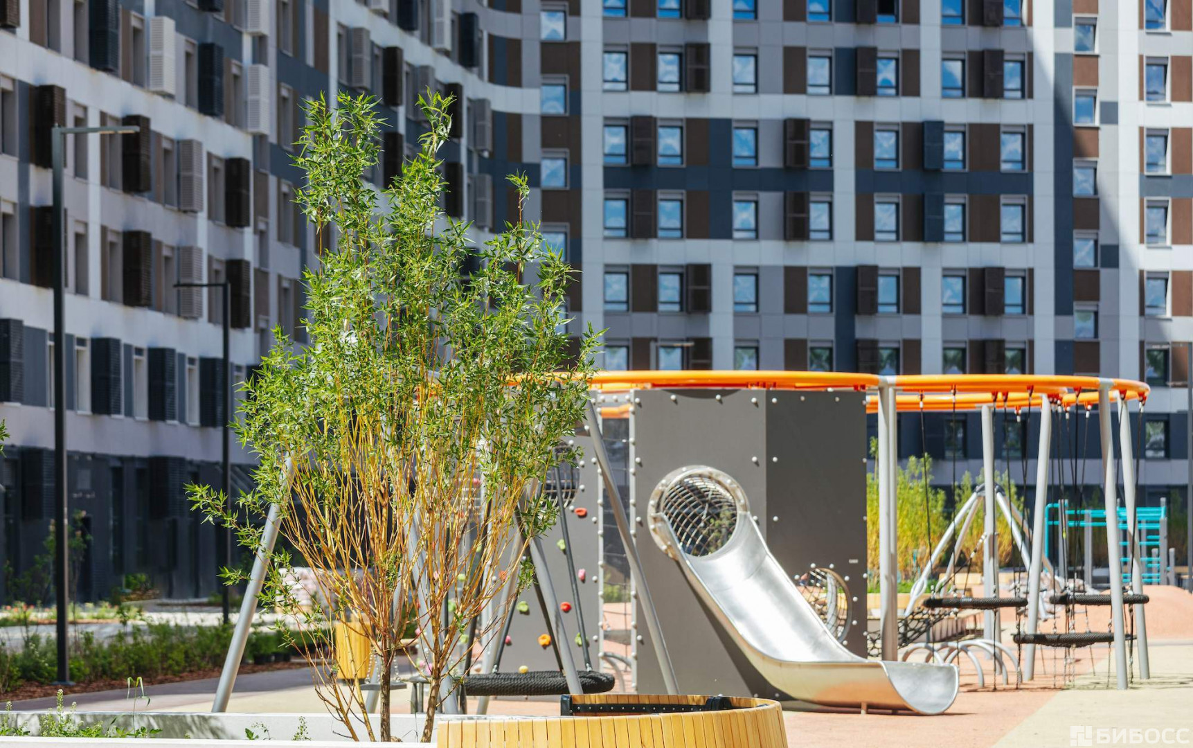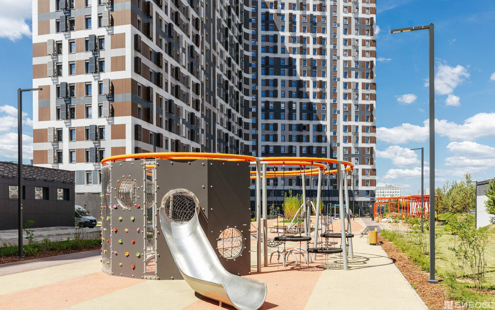В нескольких сотнях метров располагается стадион "Открытие Арена" (домашняя арена футбольного клуба "Спартак) . Возможно, именно с этим связано "физкультурное" название апарт-комплекса.