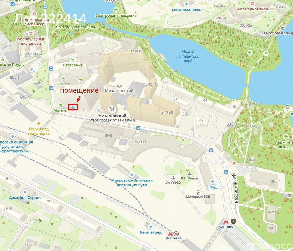 ==ЛОТ 222414 ==Предлагаем в аренду современное коммерческое помещение свободного назначения на Михалковской улице, 48к1, площадью 108 м. Объект расположен на первой линии и обеспечивает высокий трафик, что делает его привлекательным для любых видов деятельности. Удобный отдельный вход, открытая планировка. Мощность 25 кВт, при надобости большей мощности, обсудждается. В 5 минутах пешком находятся станции метро Коптево и Водный стадион, что обеспечивает удобный доступ для клиентов. В непосредственной близости расположены Усадьба Михалкова и Голубинские пруды. Автобусная остановка в 100 метрах. Помещение находится в жилом районе с плотной застройкой, в пешей доступности несколько пвз, Магнит, Аптека Горздрав, что гарантирует стабильный поток потенциальных клиентов. Цену готовы обсудить для старта вашего бизнеса. Звоните, для организации показа и дальнейшего сотрудничества!