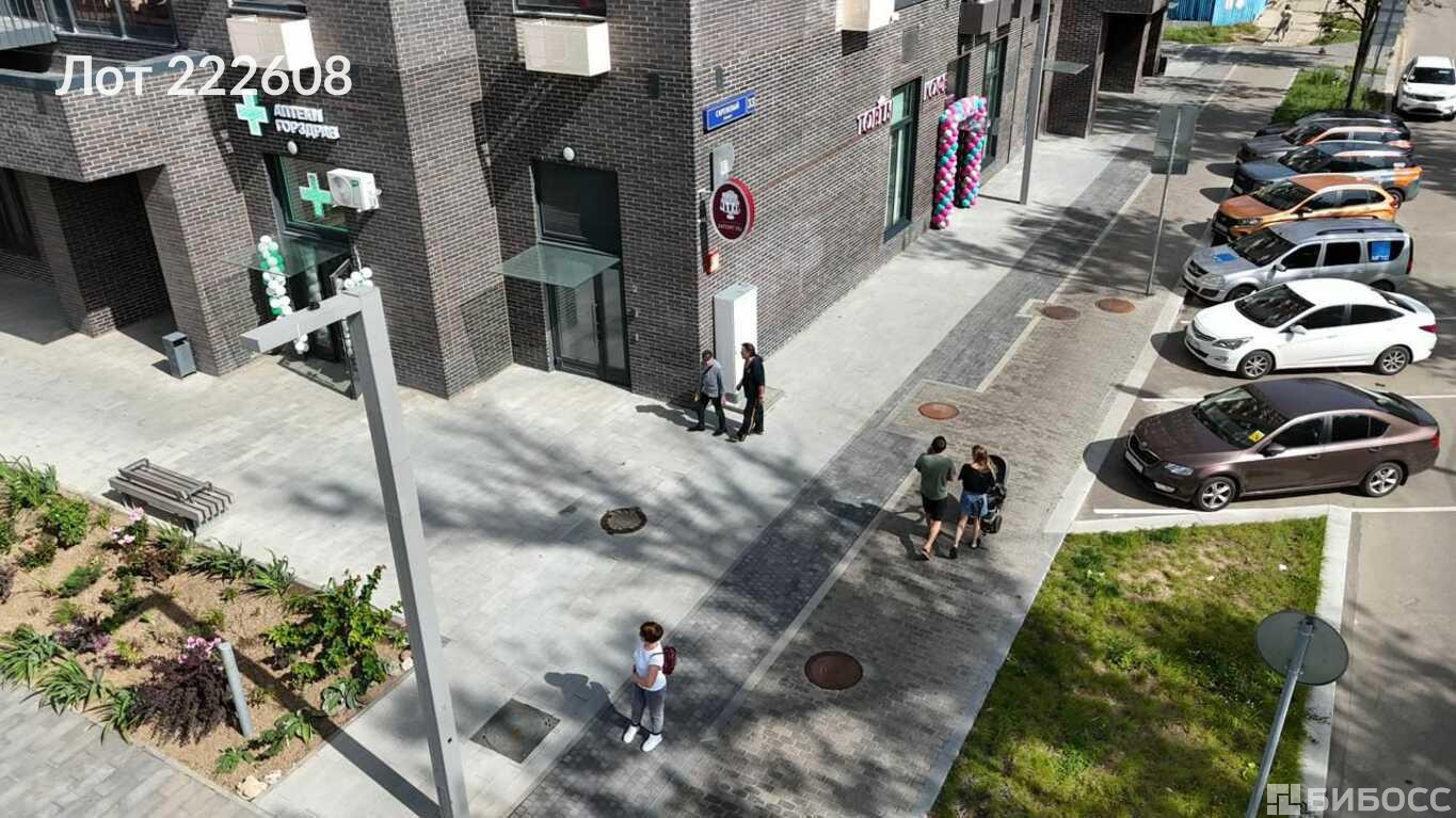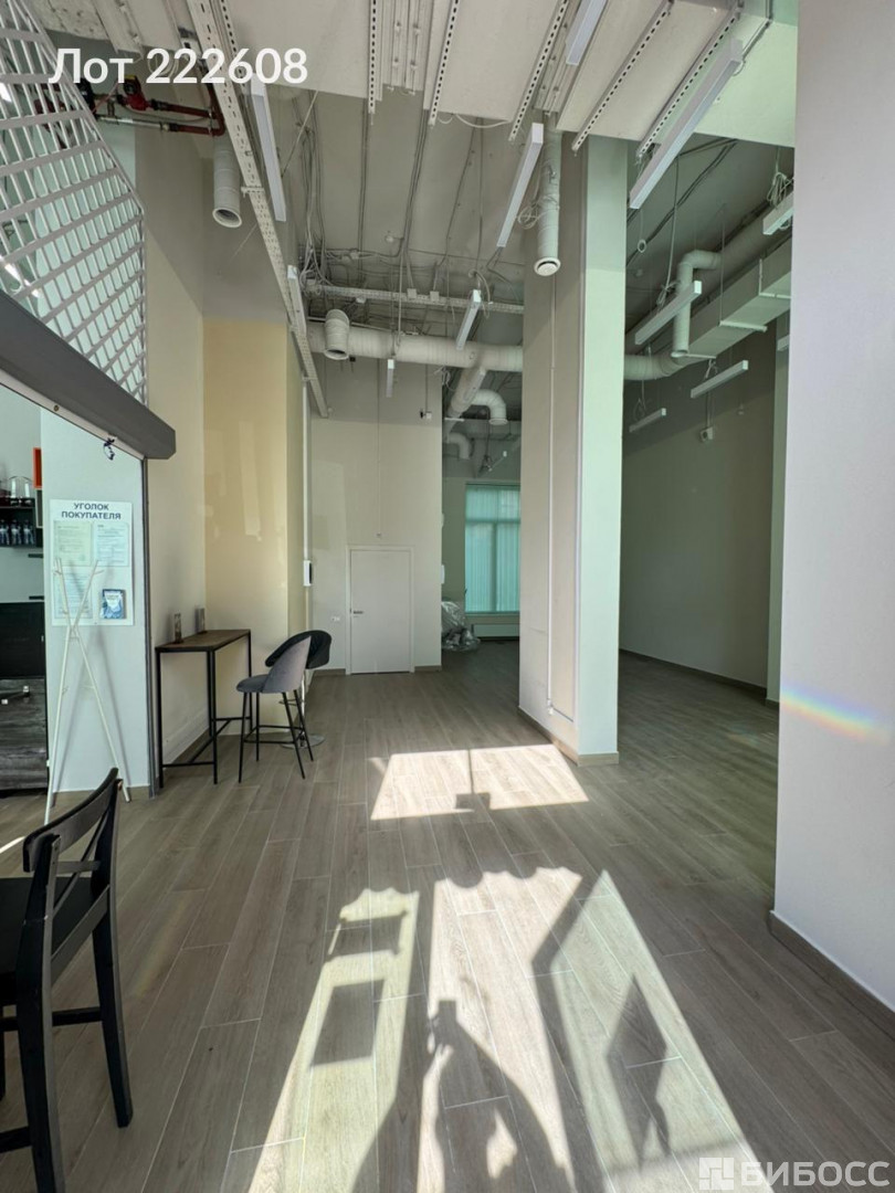==ЛОТ 222608 ==Высота потолков: 5, 5 м (возможность устройства антресоли). - Коммуникации: мокрая точка (холодная и горячая вода), кондиционер, электрическая мощность 20 кВт (с возможностью увеличения). - Отдельный вход с фасада. - Парковка перед помещением. Преимущества расположения: Угловое помещение на первой линии, выходит на площадь перед ТЦ «София», рядом автобусная остановка. В шаговой доступности: школа, поликлиника, детские сады, парки.