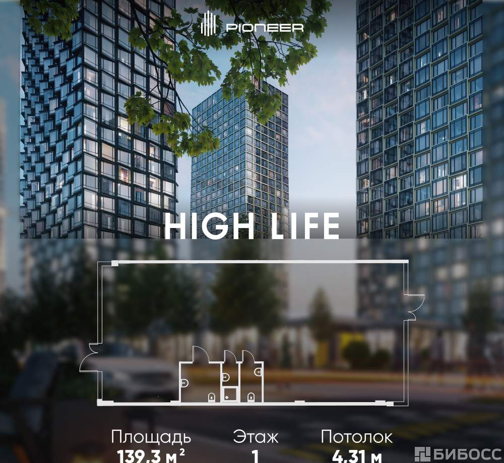 Помещение площадью 139,3 кв. м. в комплексе небоскребов HIGH LIFE. В шаговой доступности от м. Павелецкая и Садового кольца. Отдельный вход. Витринное остекление 4,5 м.