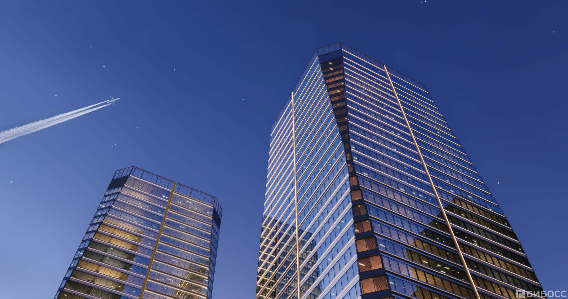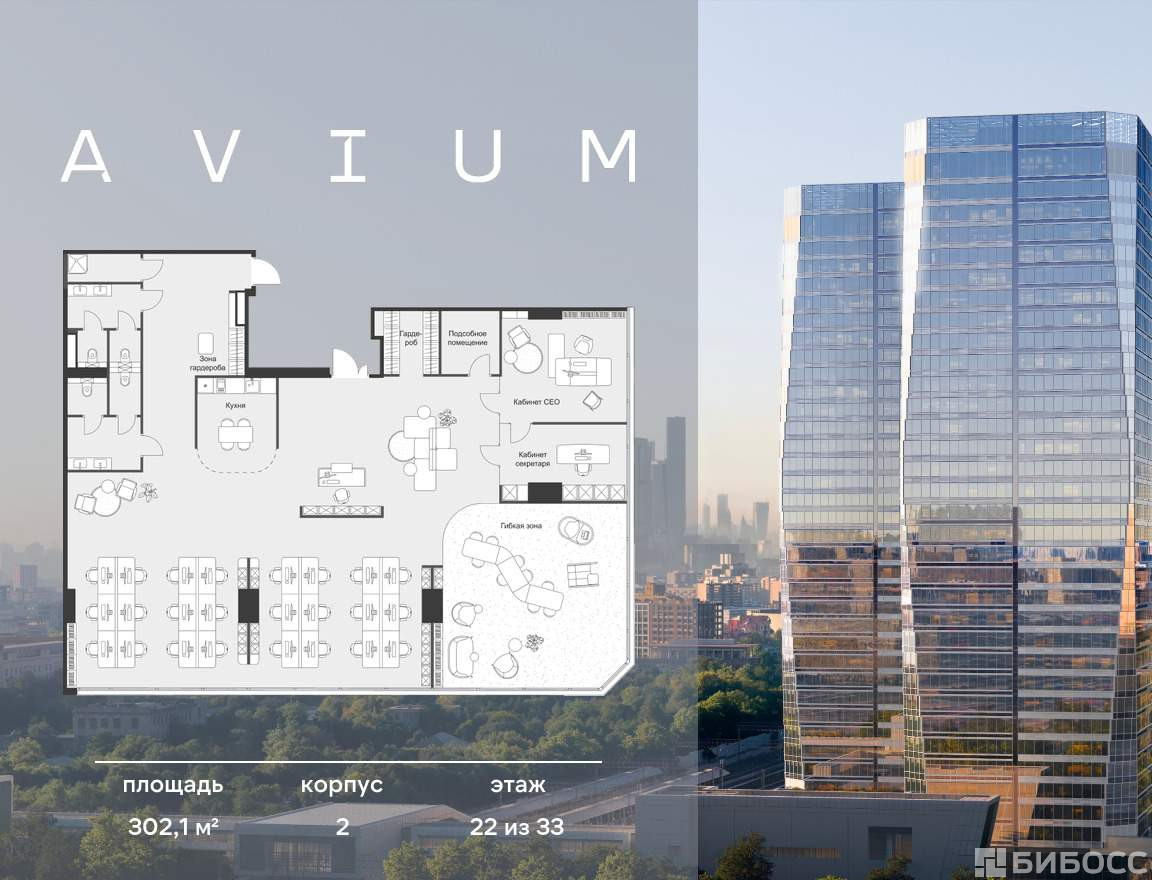 Продажа премиальных офисов в бизнес центре AVIUM. Две 34-этажные башни, объединённые галереей и дочерним корпусом.
