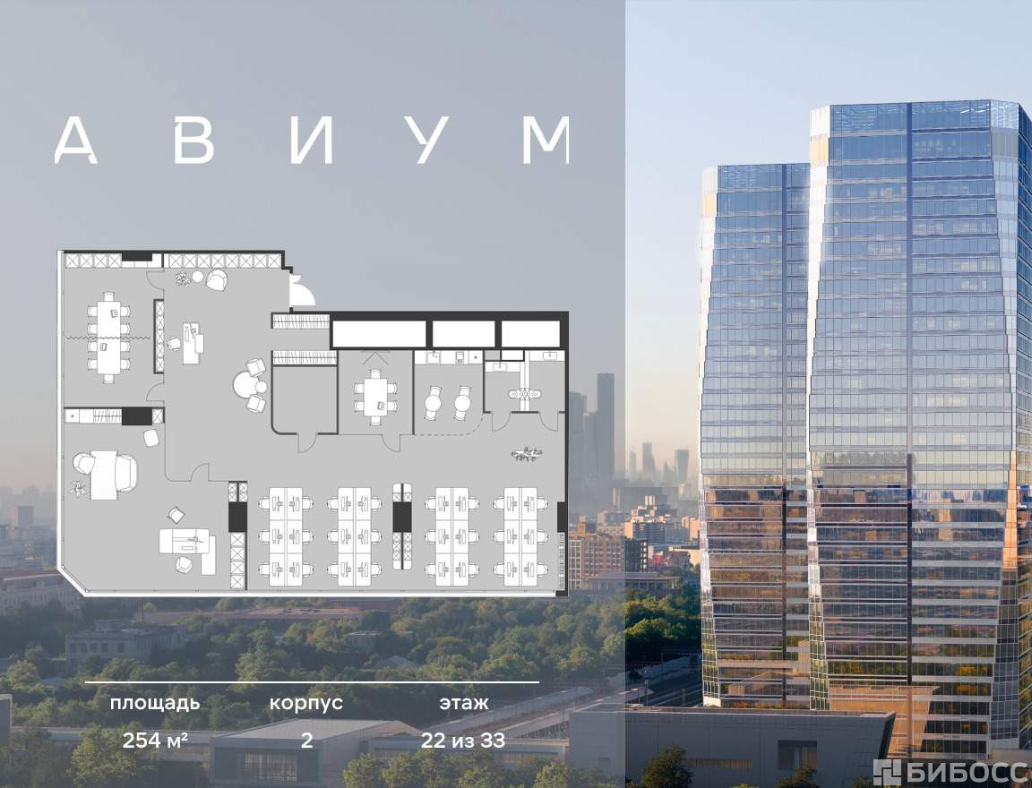 Продажа премиальных офисов в бизнес центре Авиум. Две 34-этажные башни, объединённые галереей и дочерним корпусом.
