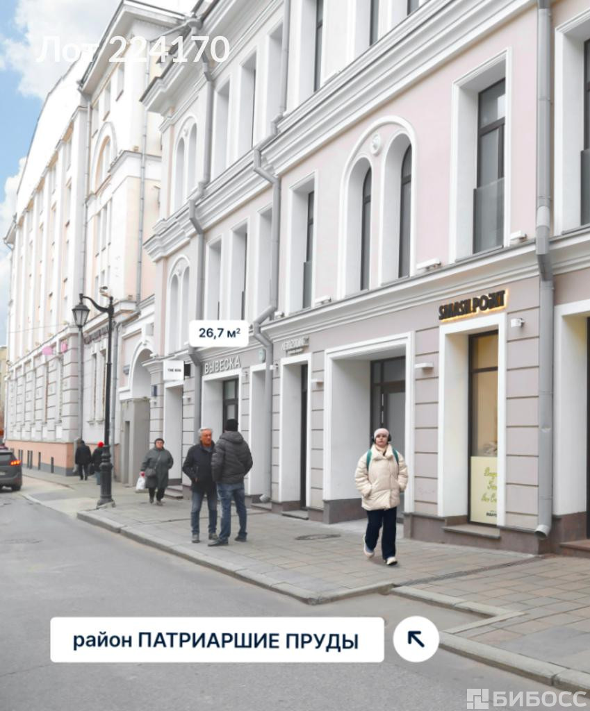 ==ЛОТ 224170 == ОТ СОБСТВЕННИКА, БЕЗ КОМИССИИ. Предлагается в аренду коммерческое помещение по адресу: г. Москва, улица Большая Бронная, Центральный административный округ. Локация находится в престижном районе Патриарших прудов. Объект расположен в непосредственной близости от станций метрополитена «Пушкинская», «Тверская» и «Чеховская», что обеспечивает легкий доступ с минимальными затратами времени на передвижение. Расстояние до каждой из указанных станций составляет приблизительно две минуты пешком.Помещение характеризуется высокой проходимостью и стратегически выгодным расположением в одном из наиболее развитых и востребованных жилых и деловых районов города. Развитая инфраструктура района обеспечивает высокий уровень удобства и комфорта для арендаторов и потенциальных клиентов.