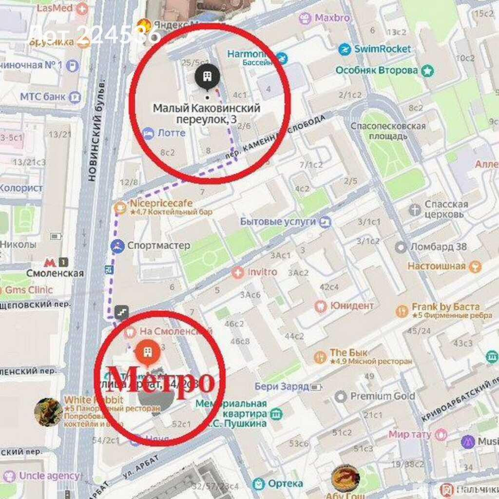 ==ЛОТ 224536 == ОТ СОБСТВЕННИКА, БЕЗ КОМИССИИ. Сдаем в аренду коммерческое помещение площадью 220 м?, расположенное по адресу: малый Каковинский переулок, 3, всего в двух минутах пешком от метро Смоленская. Это просторное и светлое помещение на первом этаже с отдельным входом идеально подходит для вашего бизнеса. Высота потолков составляет 3,5 м на первом этаже и 2,7 м в цокольной части. Помещение имеет два санузла все залы с окнами, теплые, что обеспечивает естественное освещение и хороший микроклимат. Недавно выполнен капитальный ремонт с заменой всех инженерных систем, включая отопление, водоснабжение и водоотведение. Для завершения отделочных работ мы готовы учесть ваши пожелания, включая покраску стен и укладку напольного покрытия. Площадь позволяет осуществить разнообразные варианты использования: от магазина и салона красоты до офиса или фотостудии. Невероятное месторасположение в центре Москвы, рядом с популярными магазинами, кафе и культурными достопримечательностями, придают помещению дополнительную привлекательность. Это отличная возможность для реализации вашего потенциала в одном из самых оживлённых районов столицы.