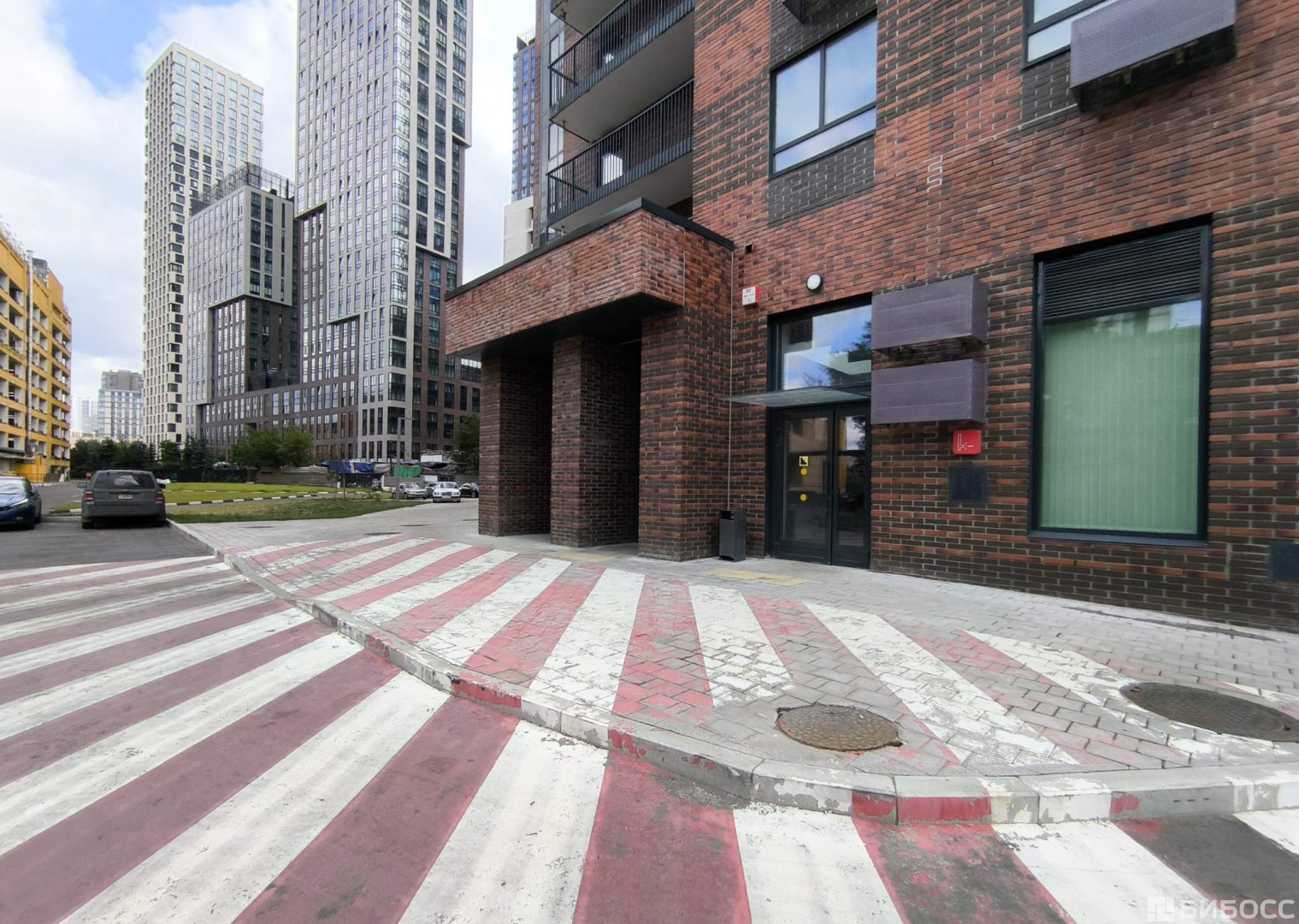 Интенсивный пешеходный и автомобильный трафик, густонаселённый район с современной жилой застройкой.