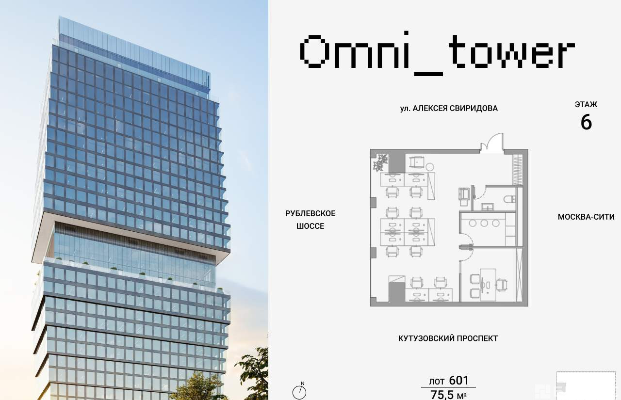 Omni Tower - это флагманский бизнес-центр класса А от девелопера . Sense, создающего пространства будущего, где технологии, комфорт и эстетика формируют новое качество деловой среды. Комплекс расположен в динамично развивающемся районе Фили-Давыдково, на улице Алексея Свиридова, всего в нескольких минутах от Кутузовского проспекта и Москва-Сити.