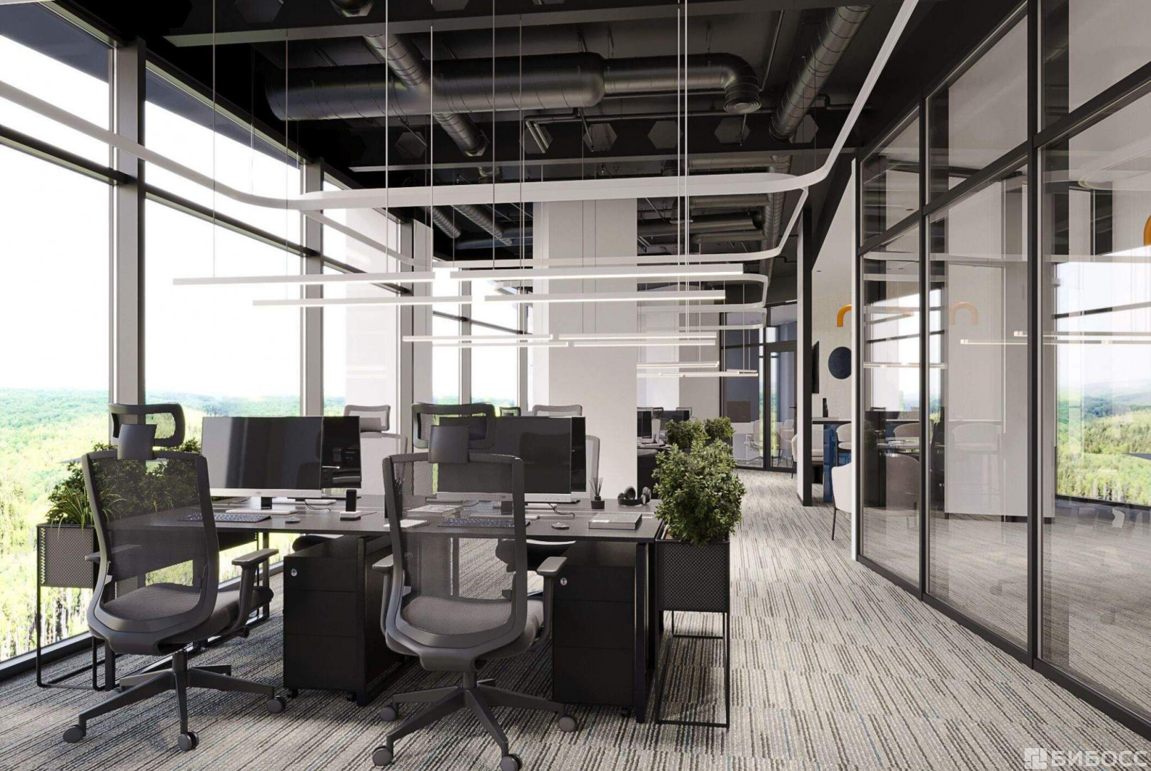 В здании предусмотрена централизованная система кондиционирования на базе VRF-систем и приточно-вытяжная вентиляция. Энергоэффективное остекление обеспечивает комфортный микроклимат в помещении, уменьшая затраты на отопление и кондиционирование, способствуя экологичному использованию ресурсов.